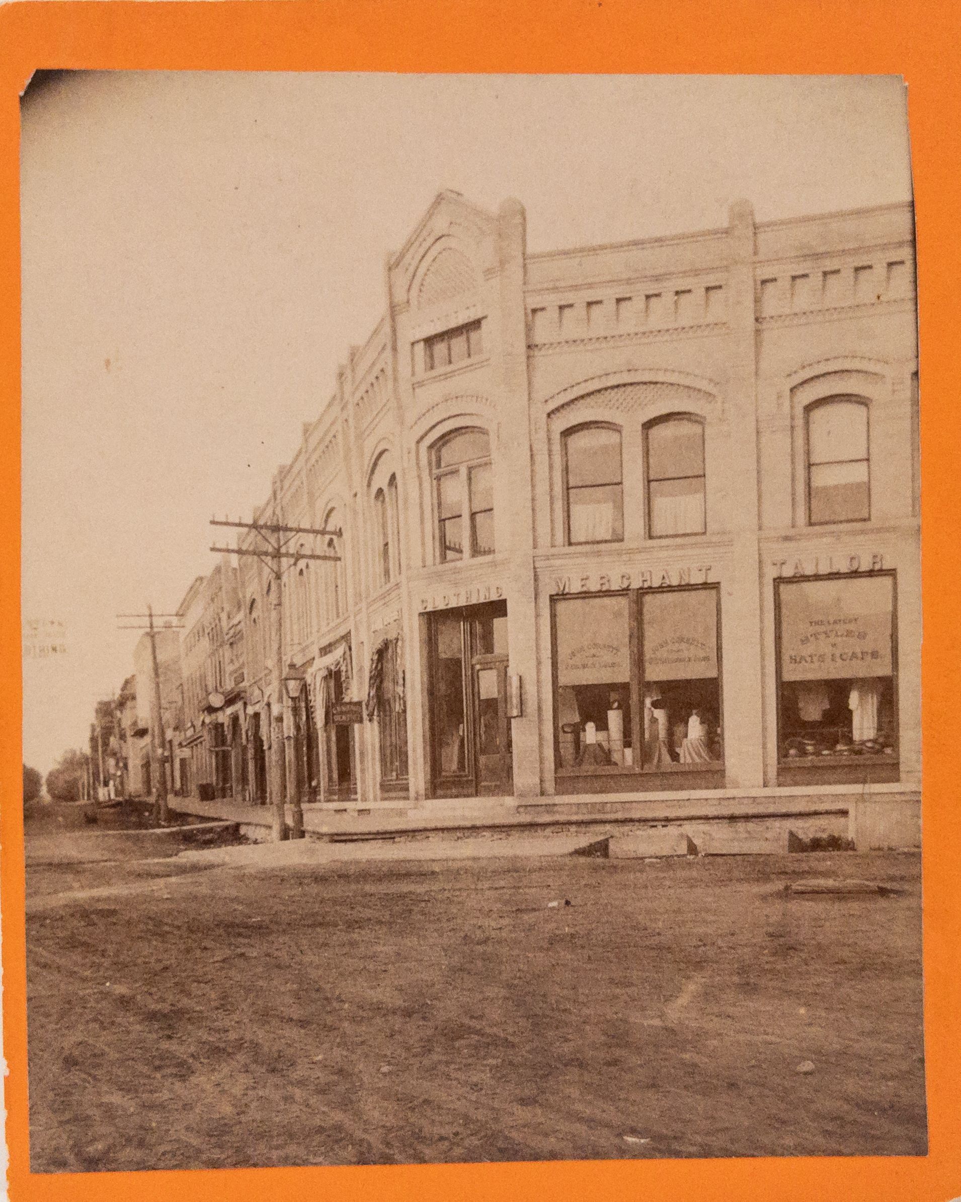 Black & white 3.5 x 4.25 photograph of 200 Watson dated 1893. Corbett Clothing Merchant Tailor.