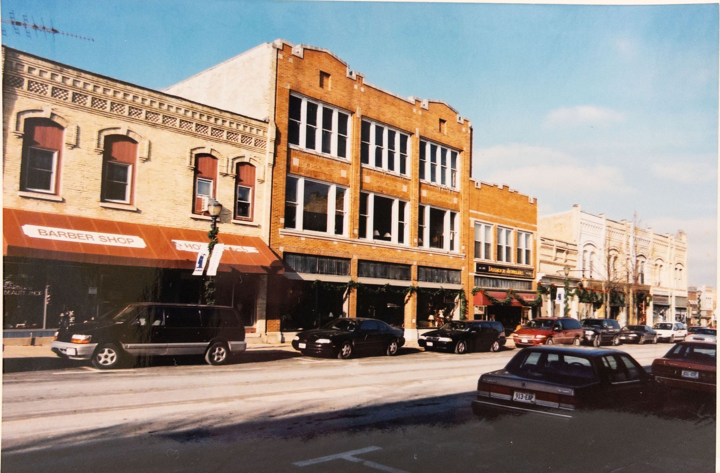 Color 4 x 6 photograph of 212-216 Watson Street. Diedrich Jewelers sign visible. Also visible on awning Barber Shop.