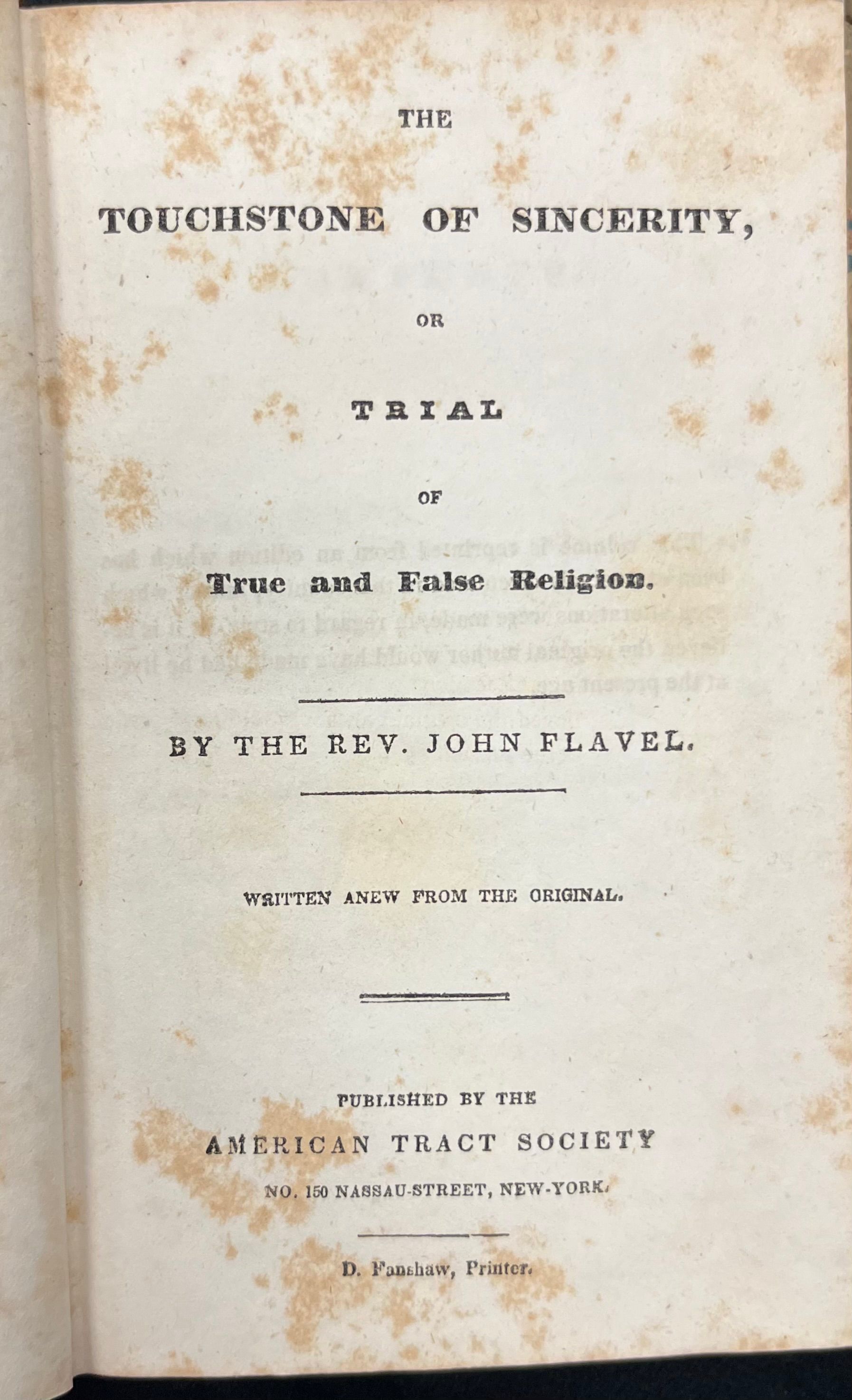 The touchstone of sincerity, or trial of true and false religion by The Rev. John Flavel