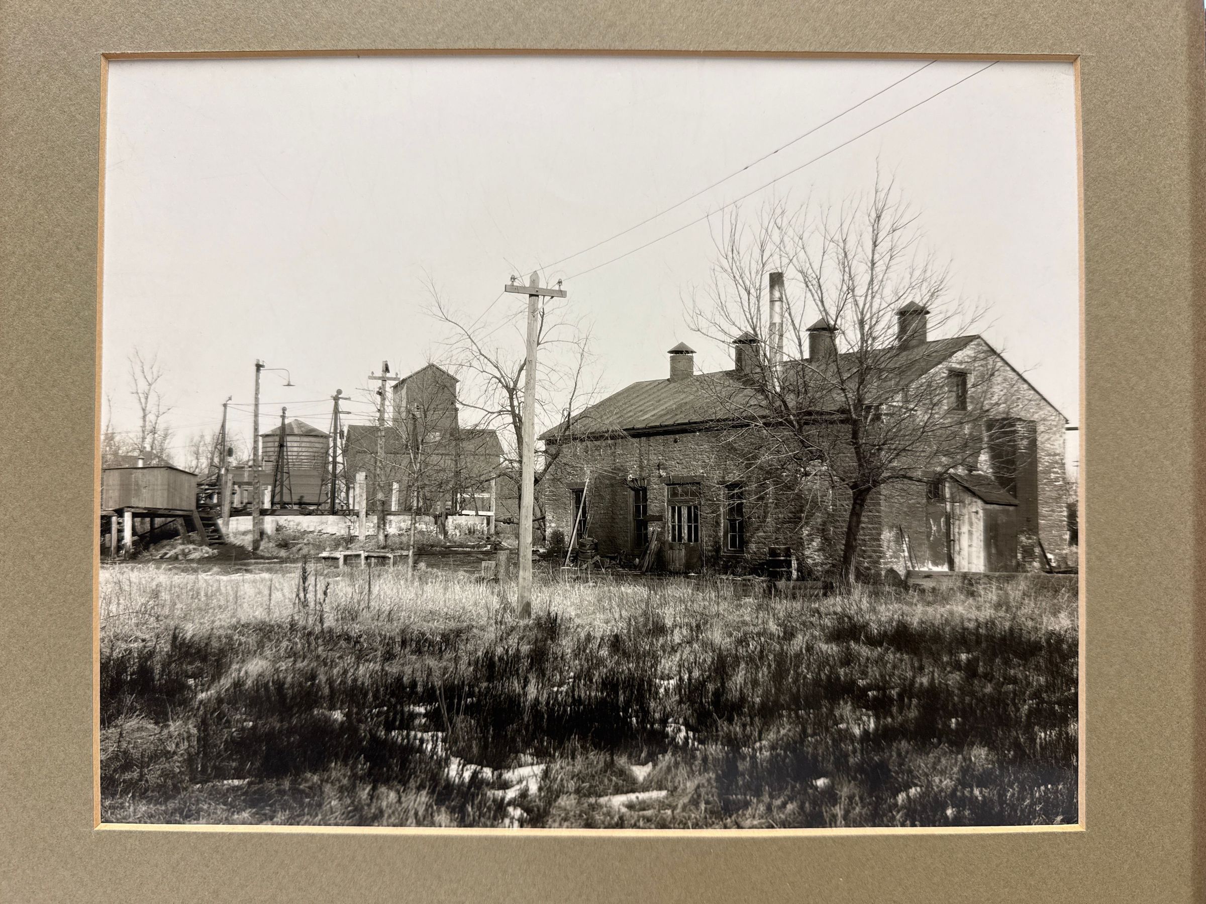 Wisconsin Power & Light gas plant after it was abandoned in 1928 according to note on back. Unclear whether this was the gas plant originally started by Lightburn in 1870s. Location believed to be where Selfridge Park is now located. Also visible is grain silo on the north side of Mill Pond.