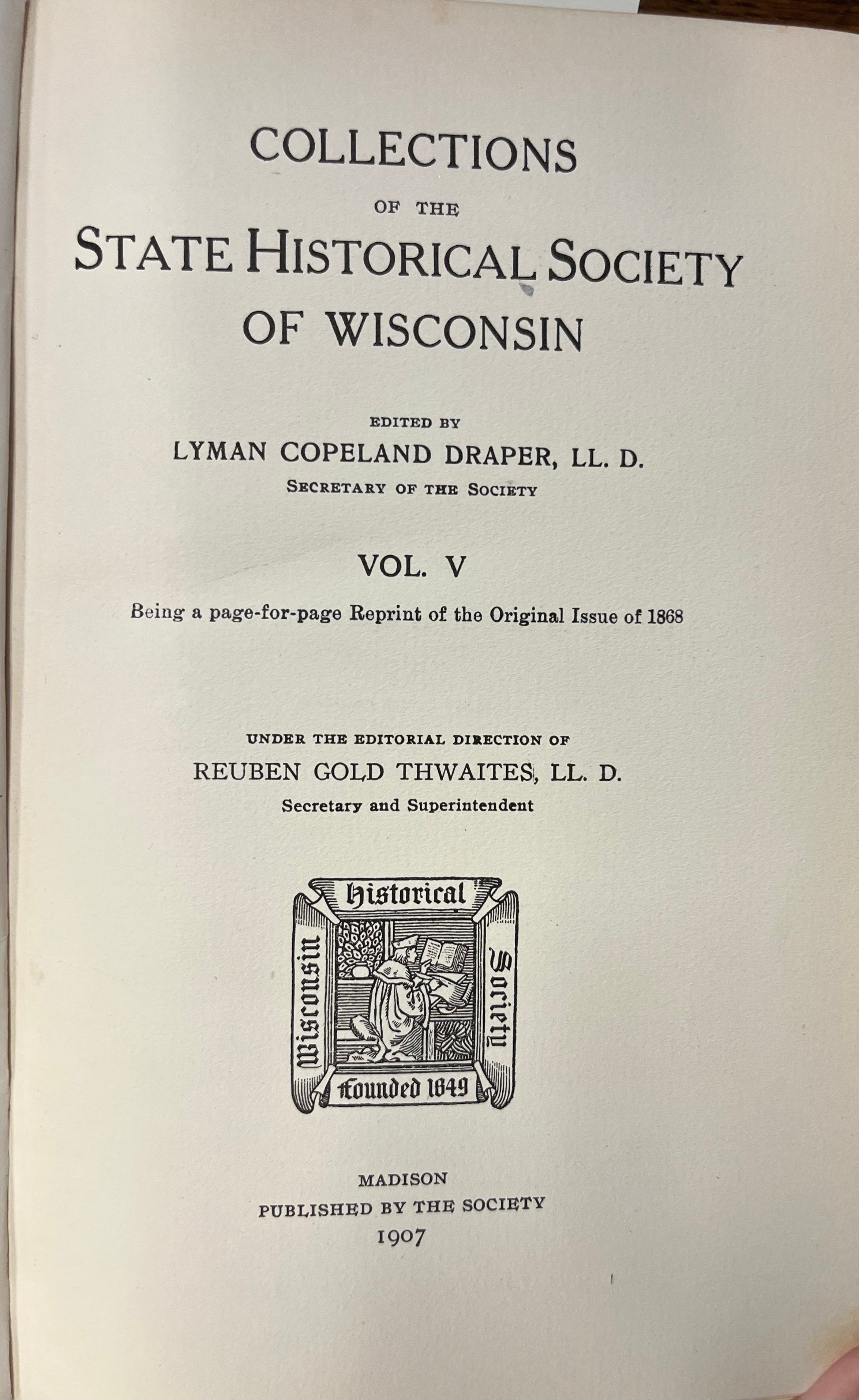 Collections of the State Historical Society of Wisconsin v. V. 1907.