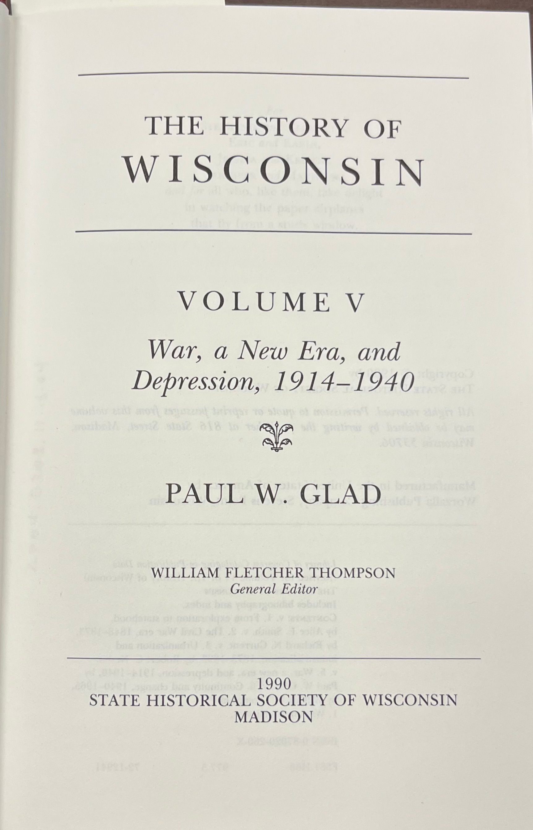 The History of Wisconsin, vol. 5, War, A New Era, and Depression, 1914-1940