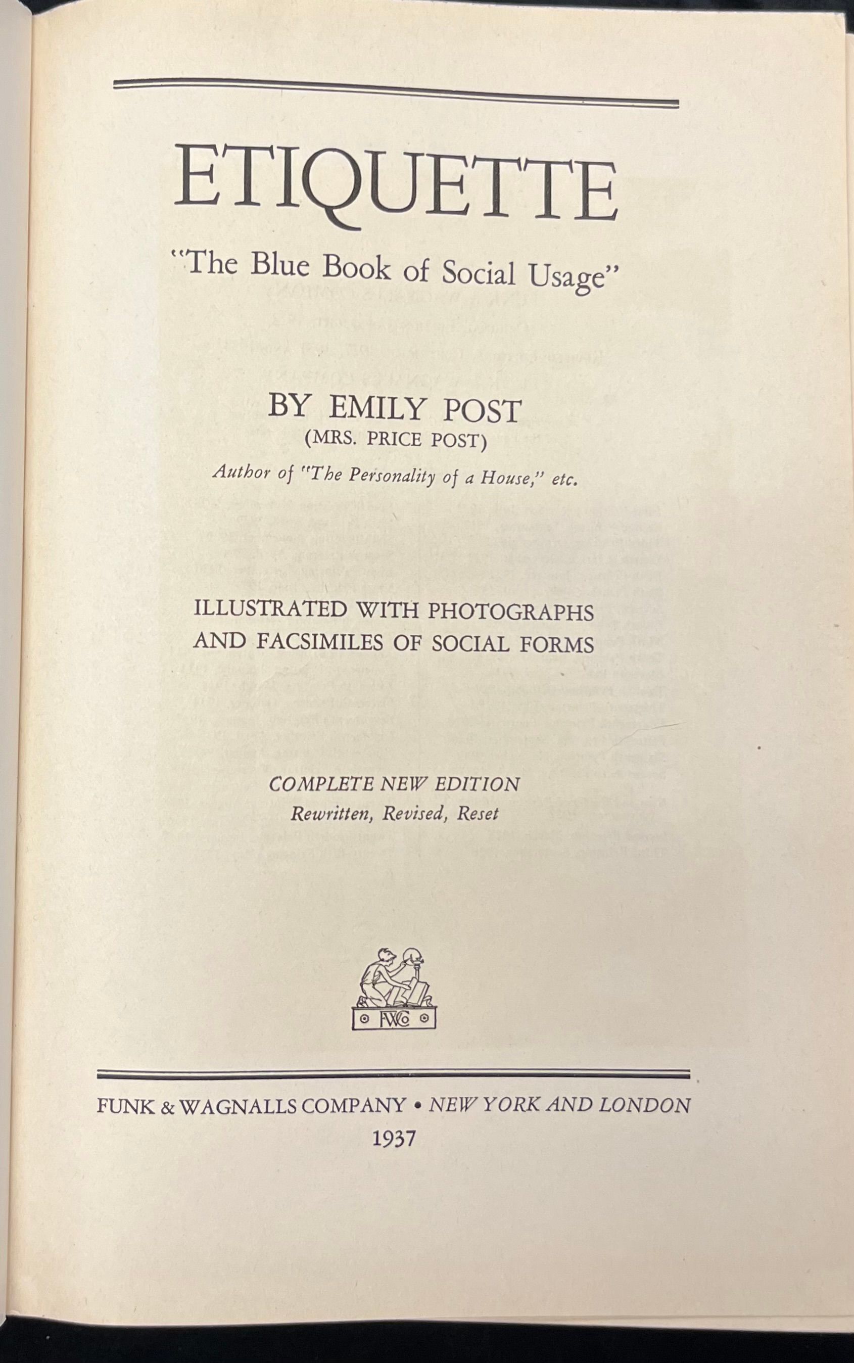 Etiquette: "The Blue Book of Social Usage" by Emily Post