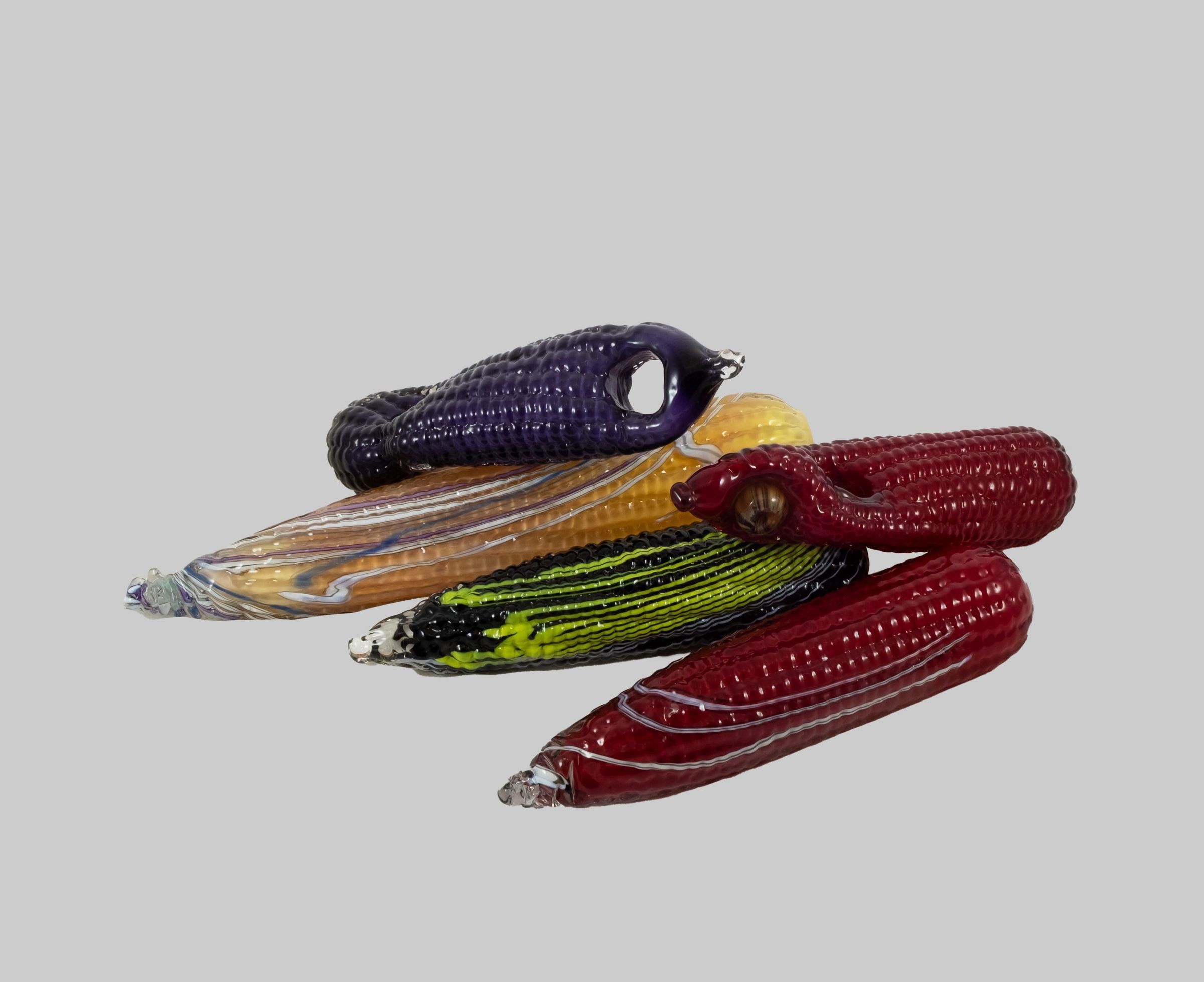 After serving in the Peace Corps, as well as traveling Europe, Meilahn returned to the United States to earn a Master of Science in Art from Illinois State University. After years of trying to keep his two passions of farming and art separate, blown glass corn became a symbol for him of both.