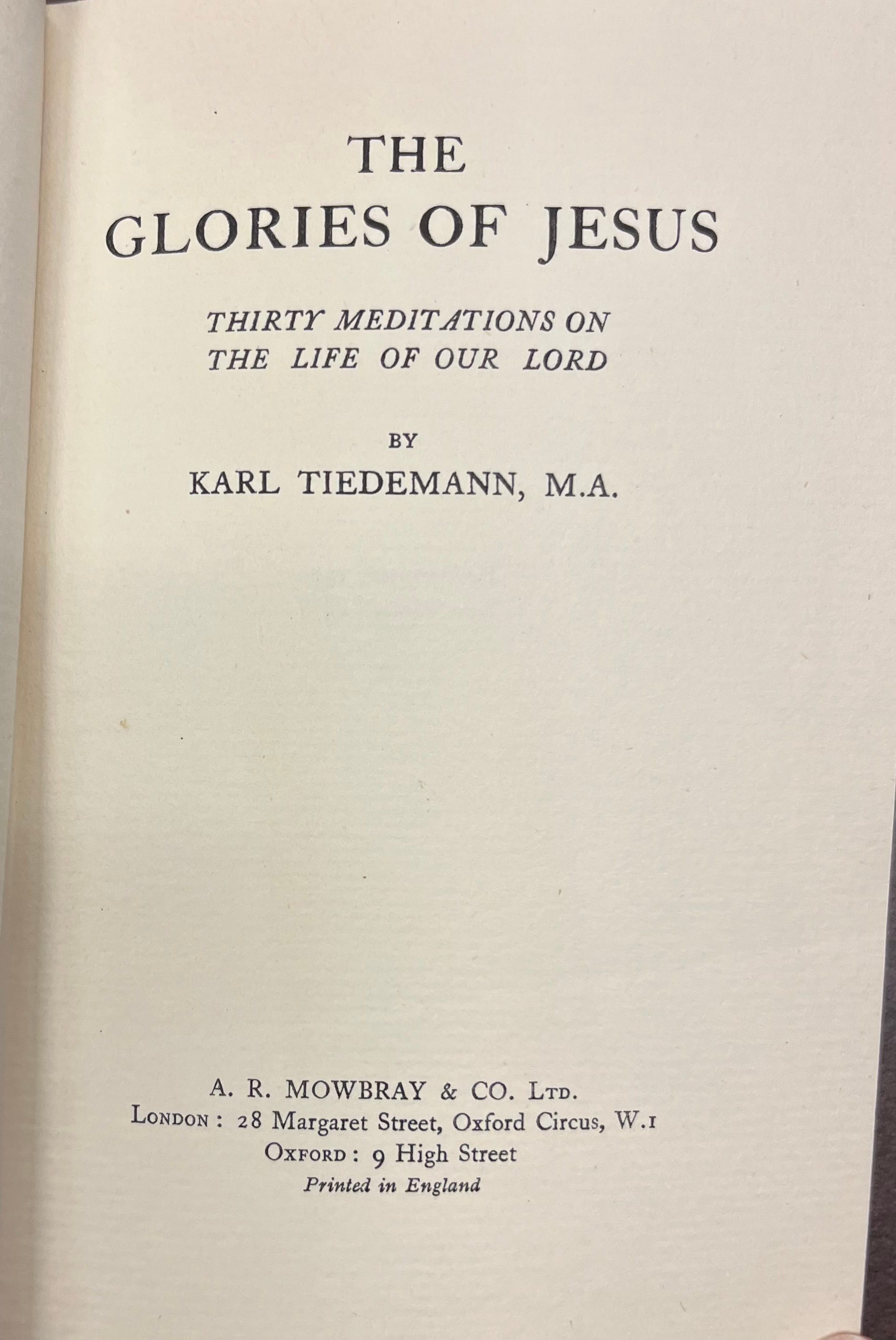 The Glories of Jesus: thirty meditations on the life of our Lord by Karl Tiedemann