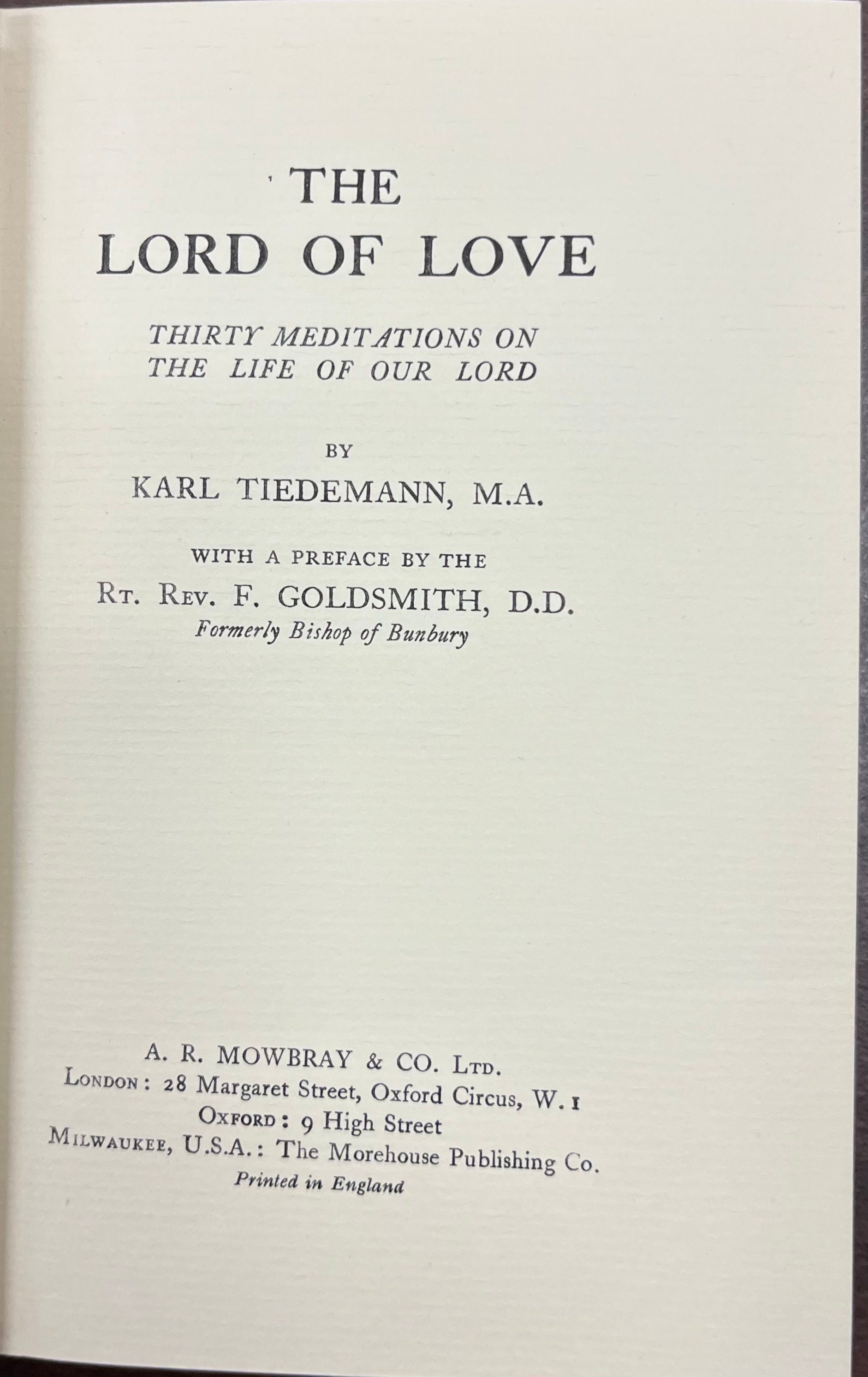 The Lord of Love; thirty meditations on the life of our Lord by Karl Tiedemann