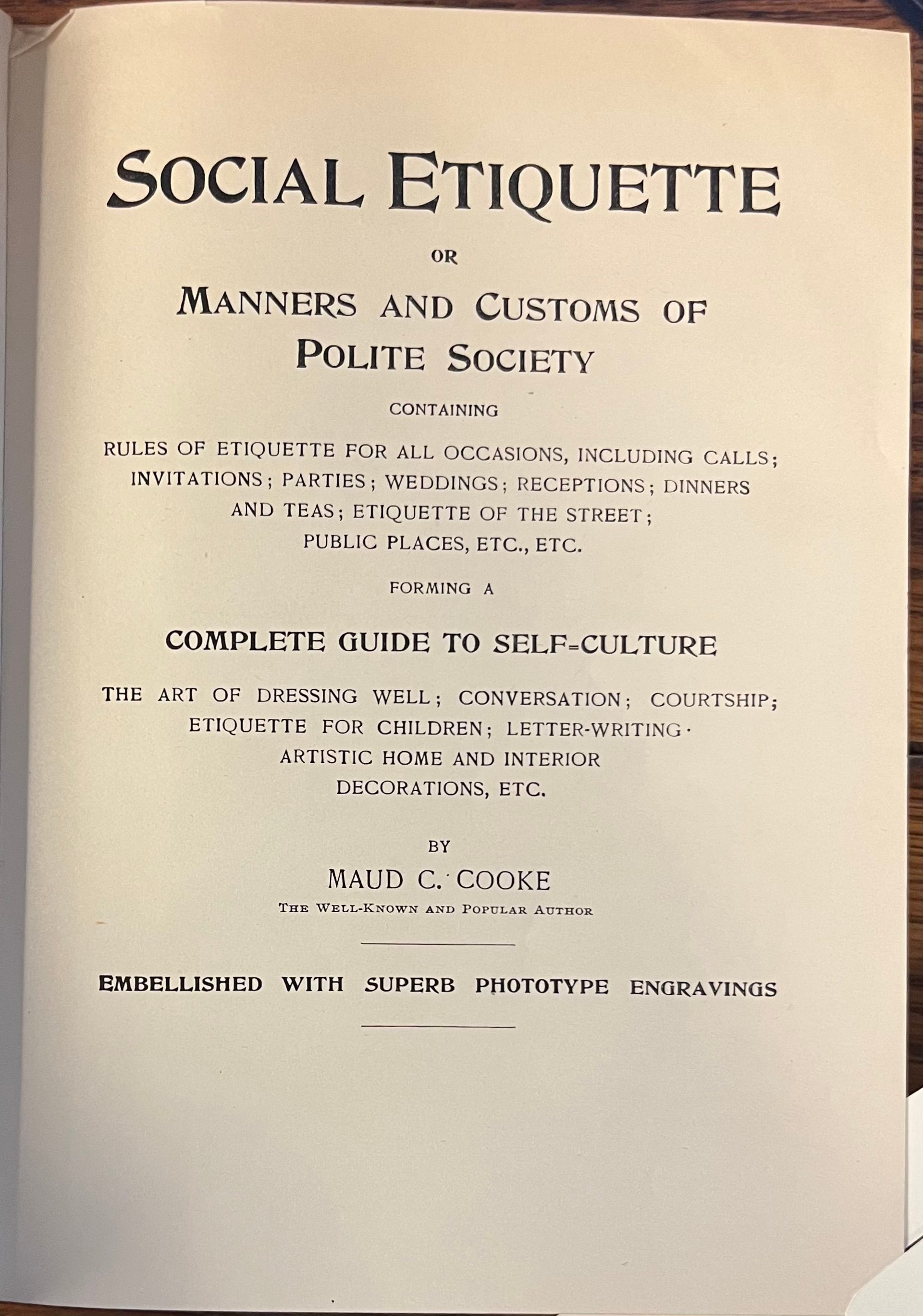 Social Etiquette or Manners and Customs of Polite Society by Maud C. Cooke