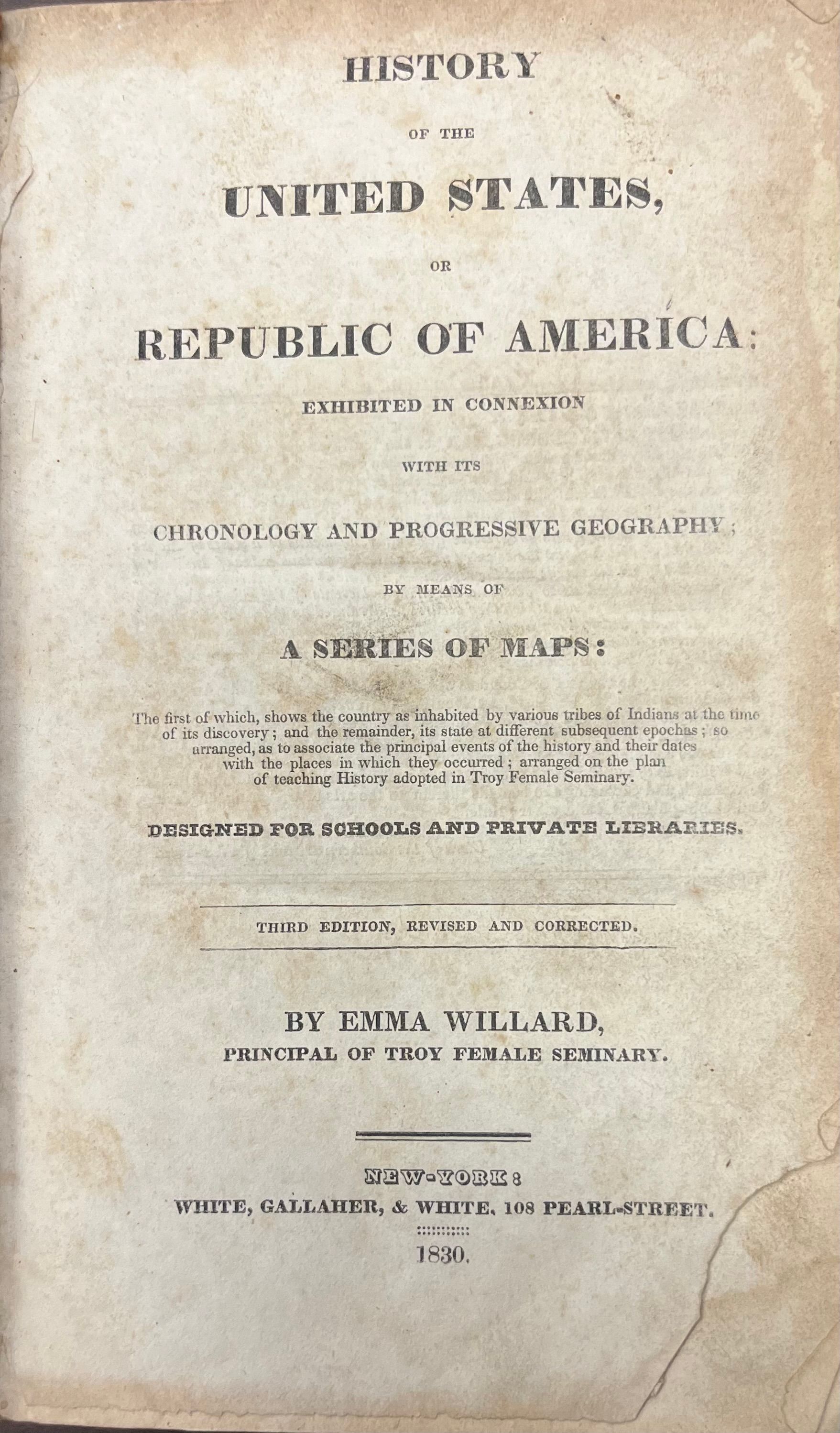 History of the United States, or Republic of America: Exhibited in Connexion with its Chronology and Progressive Geography By Means of a Series of maps...by Emma Willard