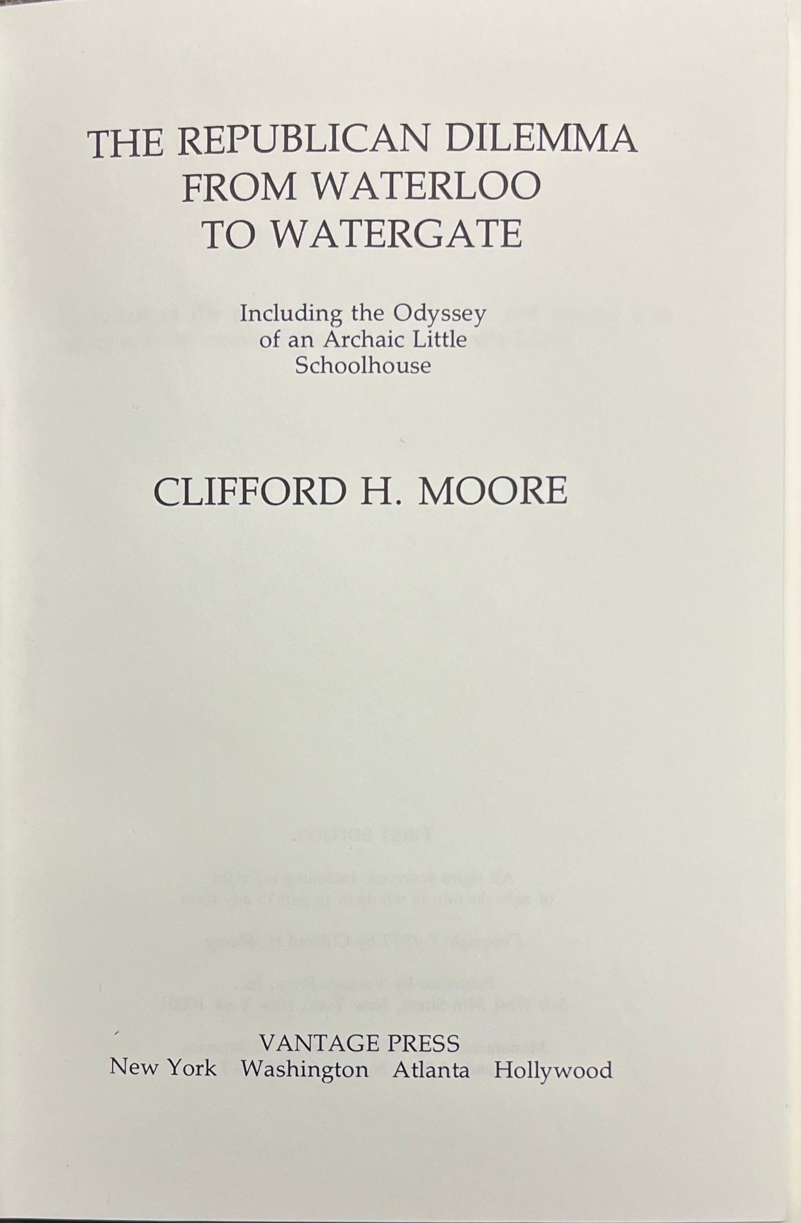 The Republican Dilemma from Waterloo to Watergate; Including the Odyssey of an Archaic Little Schoolhouse by Clifford H. Moore
