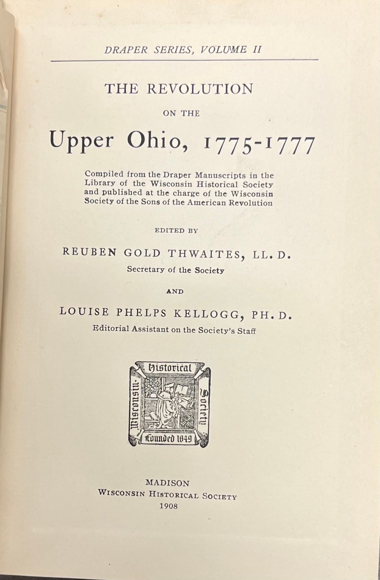 The Revolution on the Upper Ohio, 1775-1777...edited by Reuben Gold Thwaites and Louise Phelps Kellogg