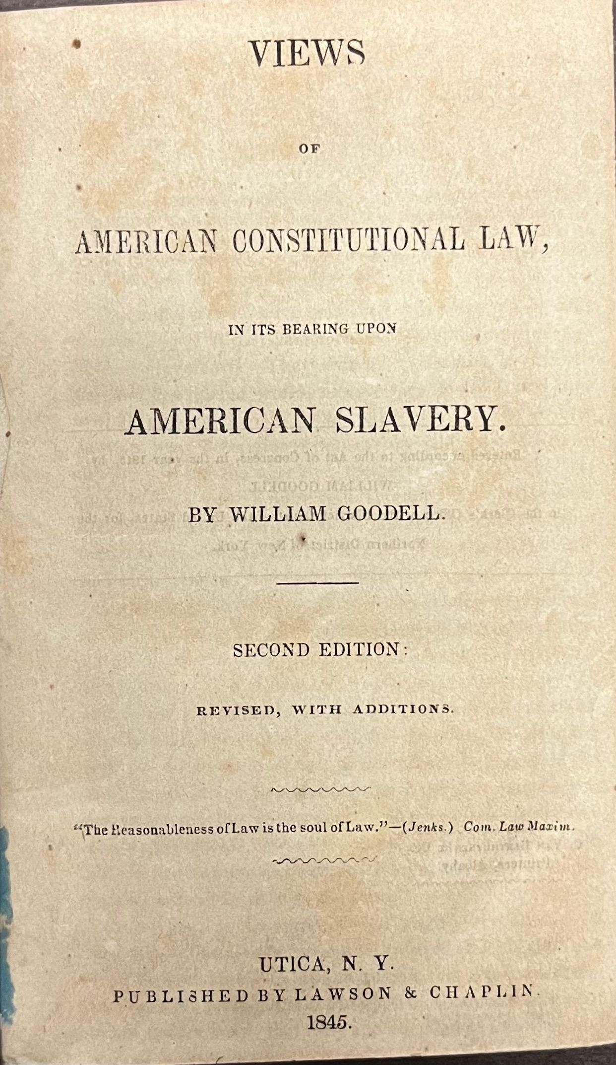 Views of American constitutional law, in its bearing upon American Slavery by William Goodell 1845