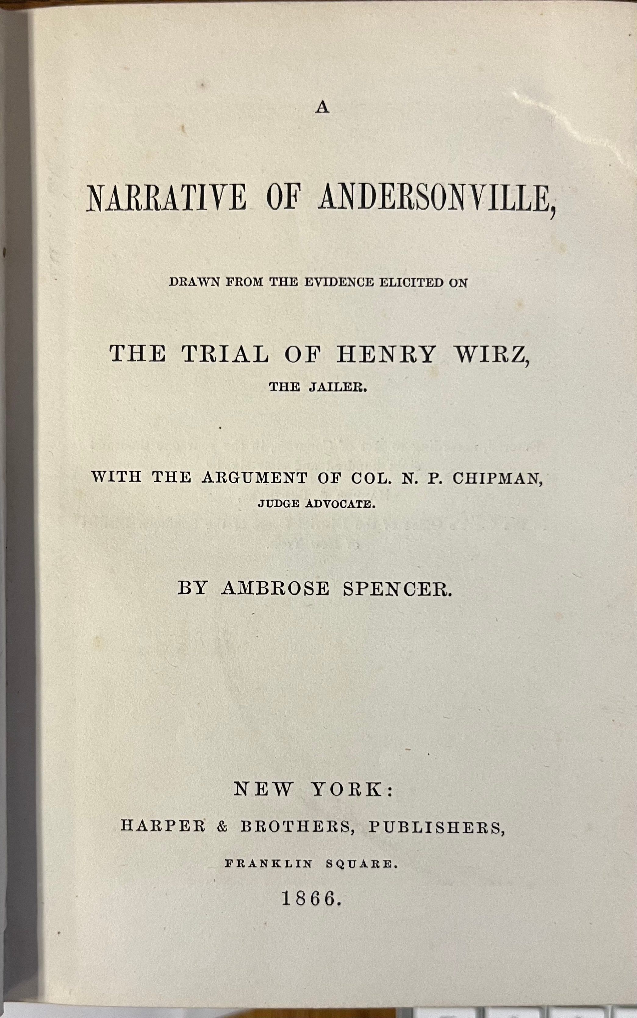 A Narrative of Andersonville Drawn from the Evidence Elicited on the Trial of Henry Wirz, the jailer... by Ambrose Spencer