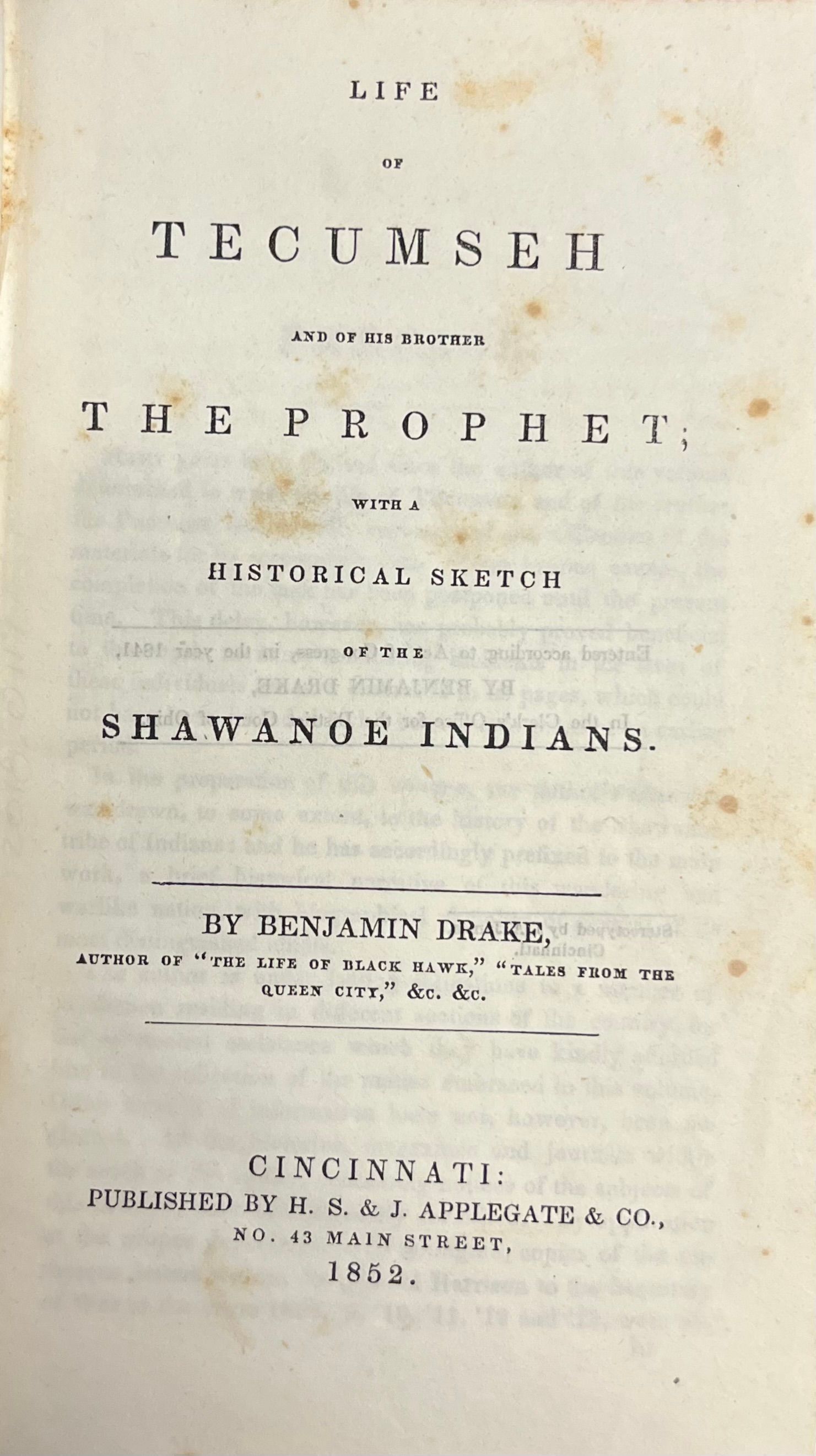 Life of Tecumseh and his brother the prophet with a. historical sketch of the Shawanoe Indians by Benjamin Drake