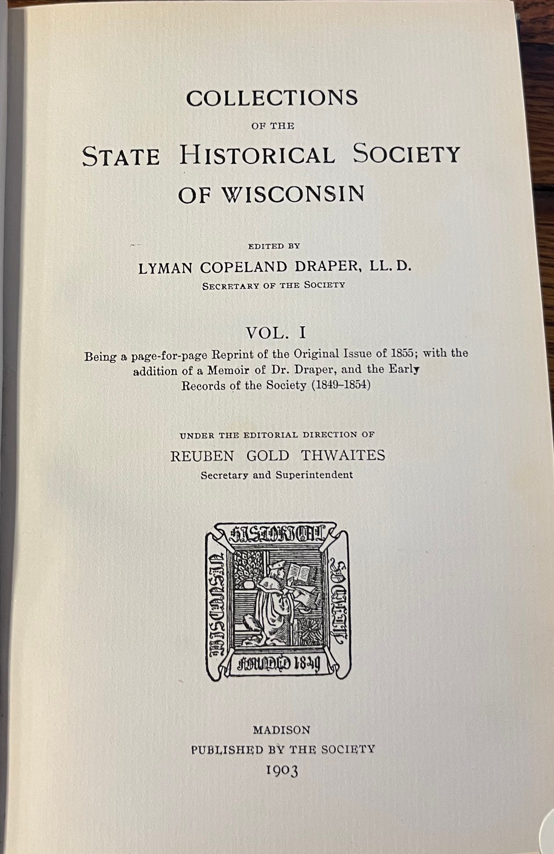 Collections of the State Historical Society of Wisconsin. V. I