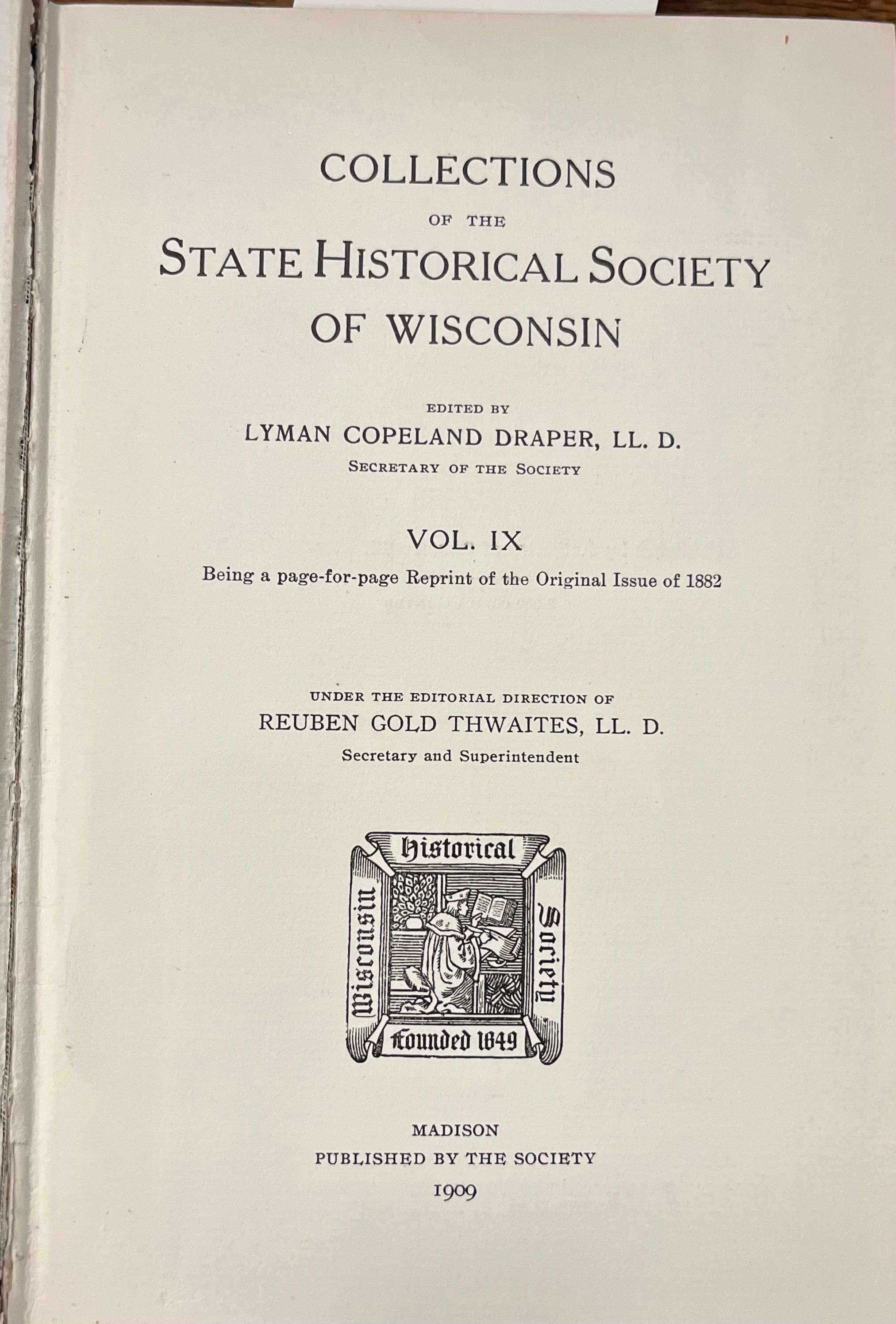 Collections of the State Historical Society of Wisconsin V. IX