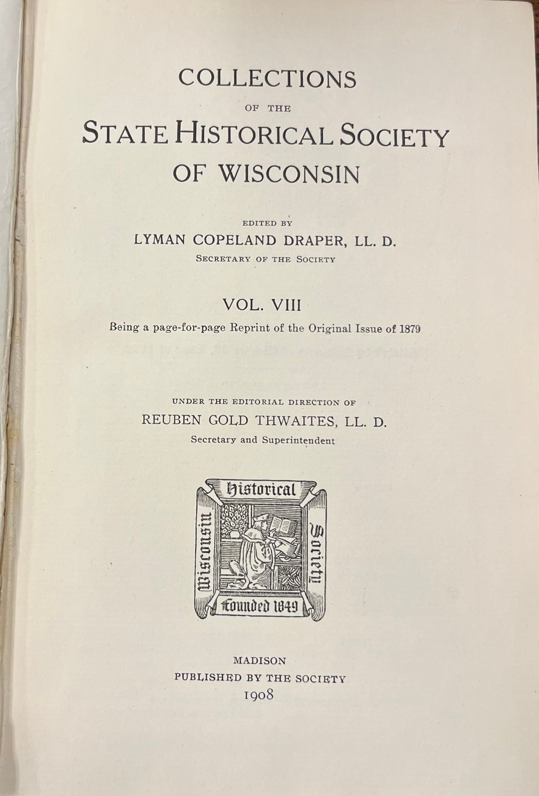 Collections of the State Historical Society of Wisconsin v. VIII.