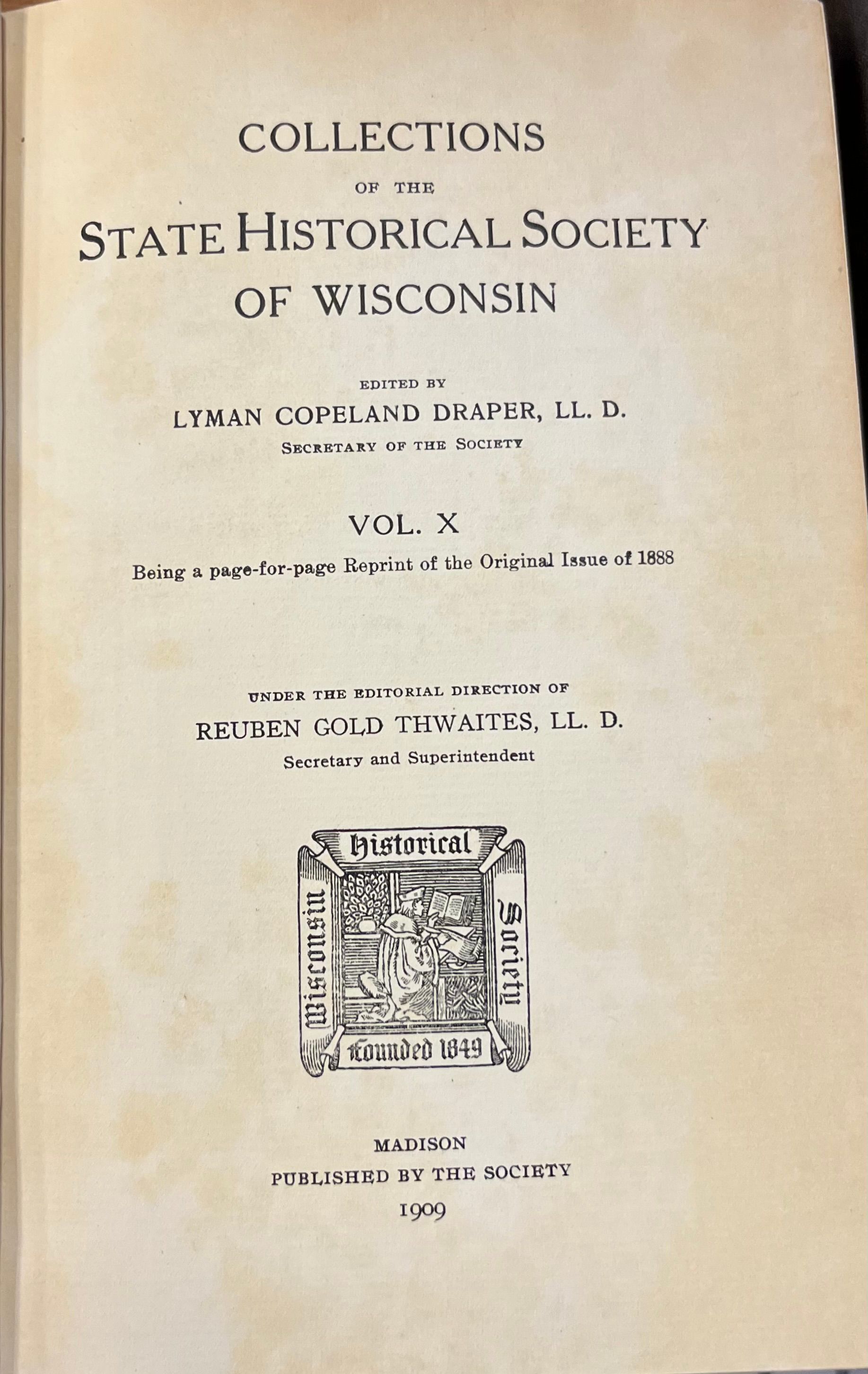 Collections of the State Historical Society of Wisconsin V. X