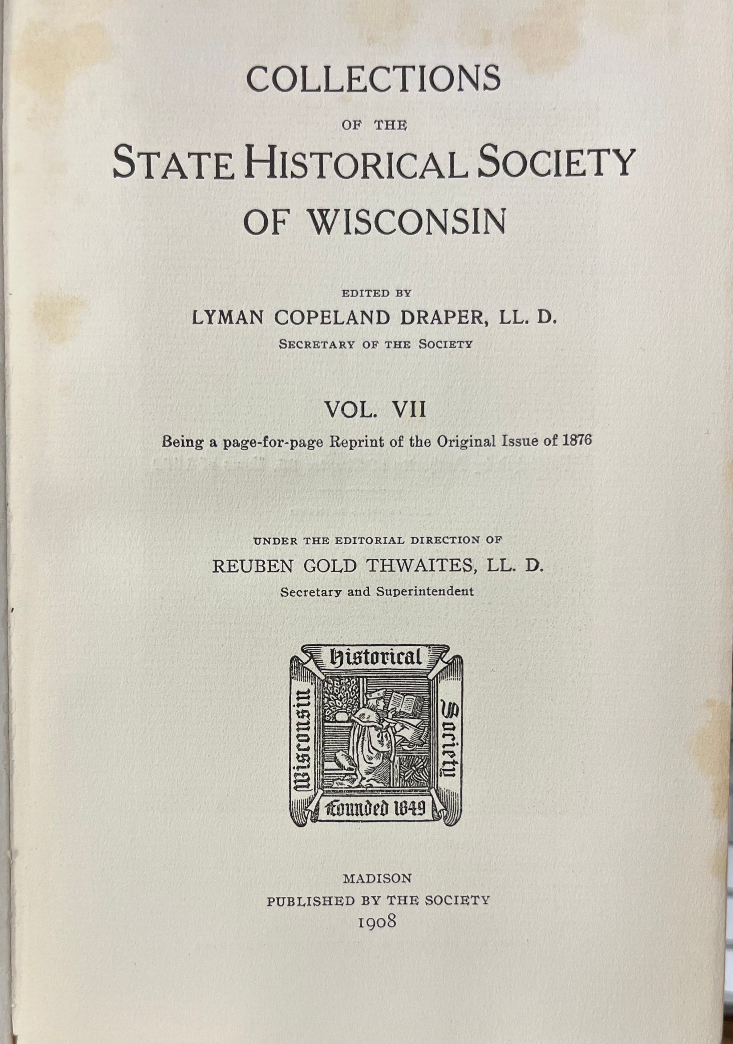 Collections of the State Historical Society of Wisconsin v. VII.