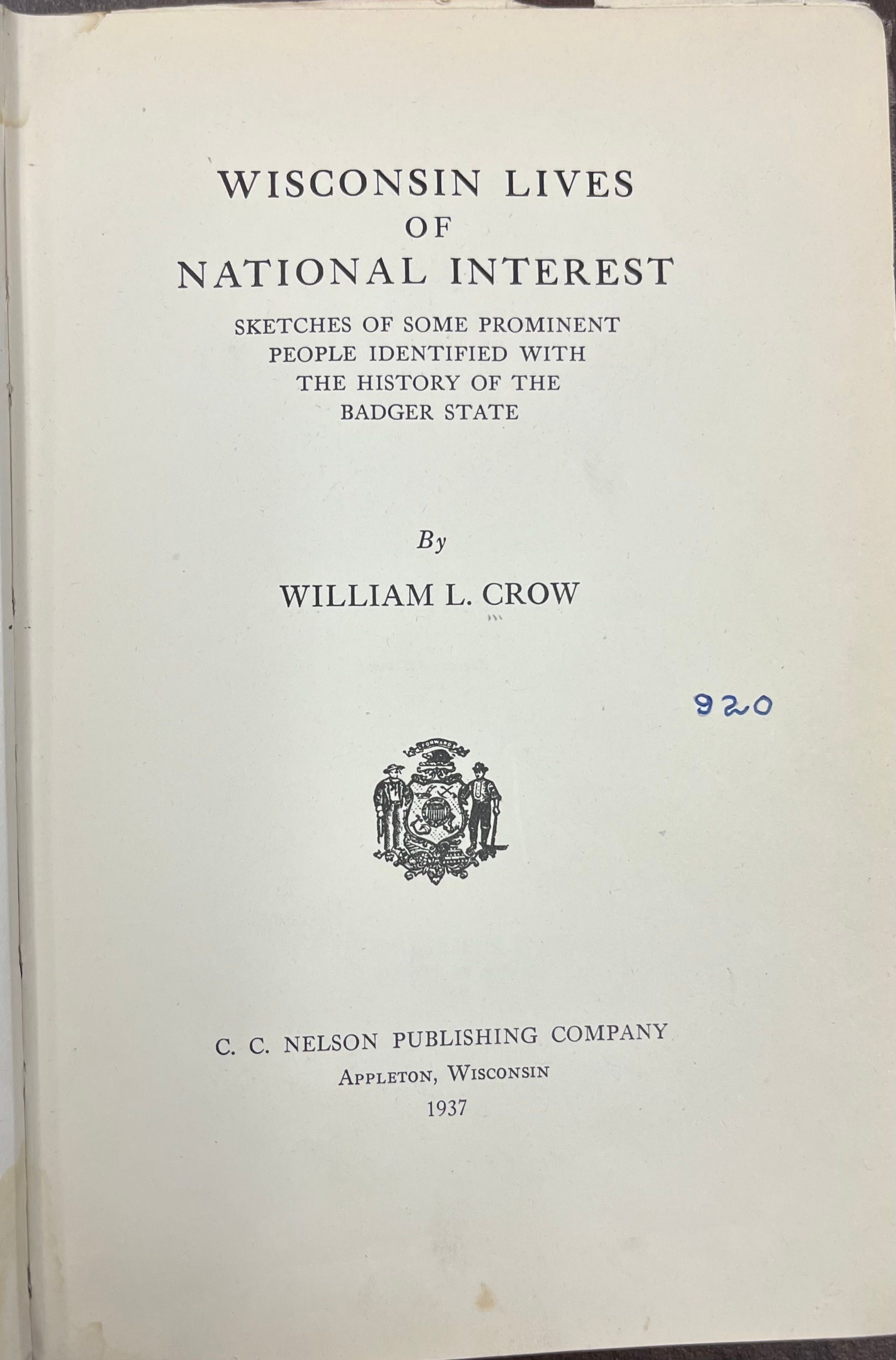 Wisconsin Lives of National Interest: sketches of some prominent people identified with the history of the Badger state by William L. Crow.Book Details