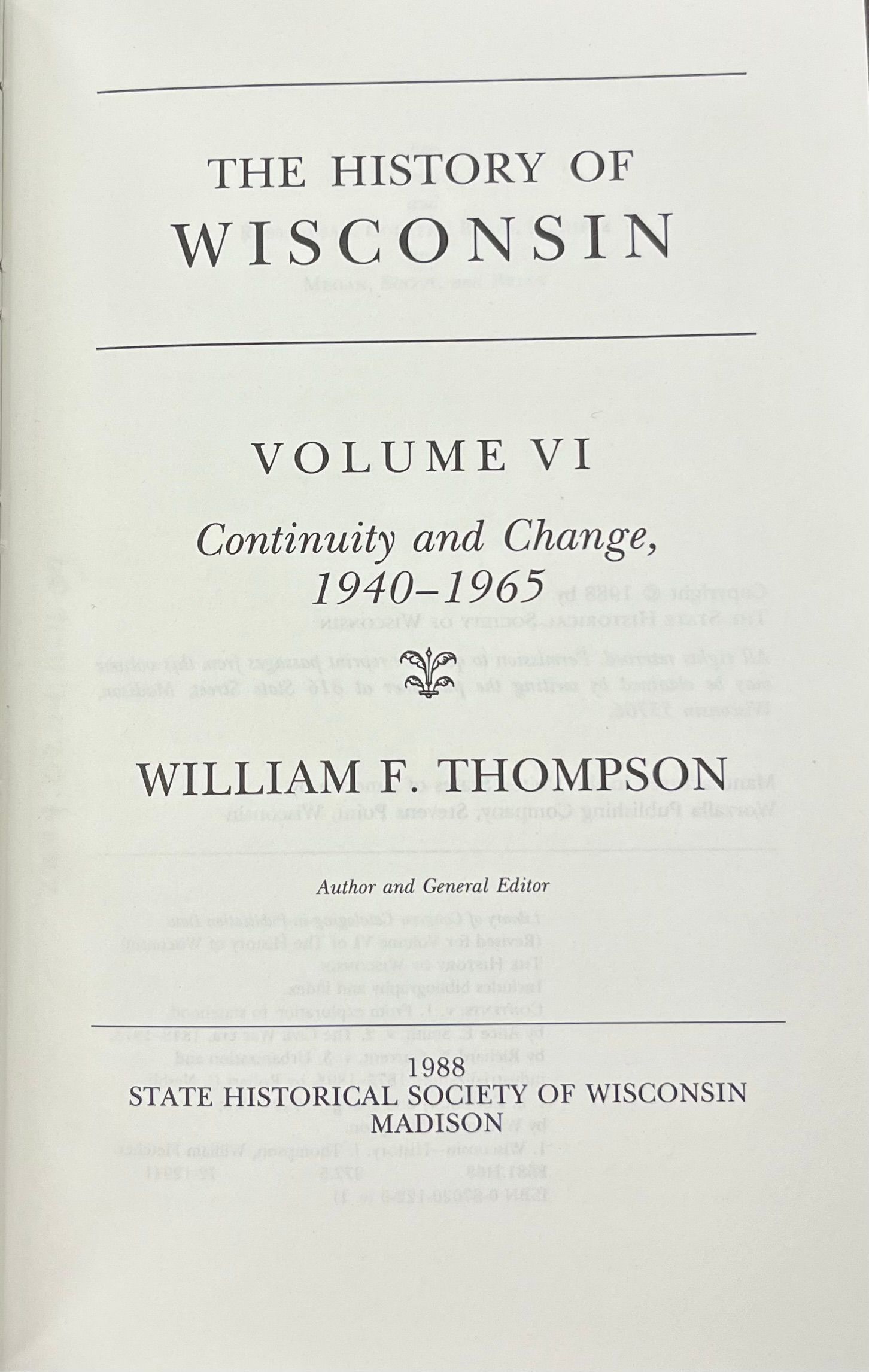 The History of Wisconsin, vol. 6, Continuity and Change, 1940-1965 by William F. Thompson