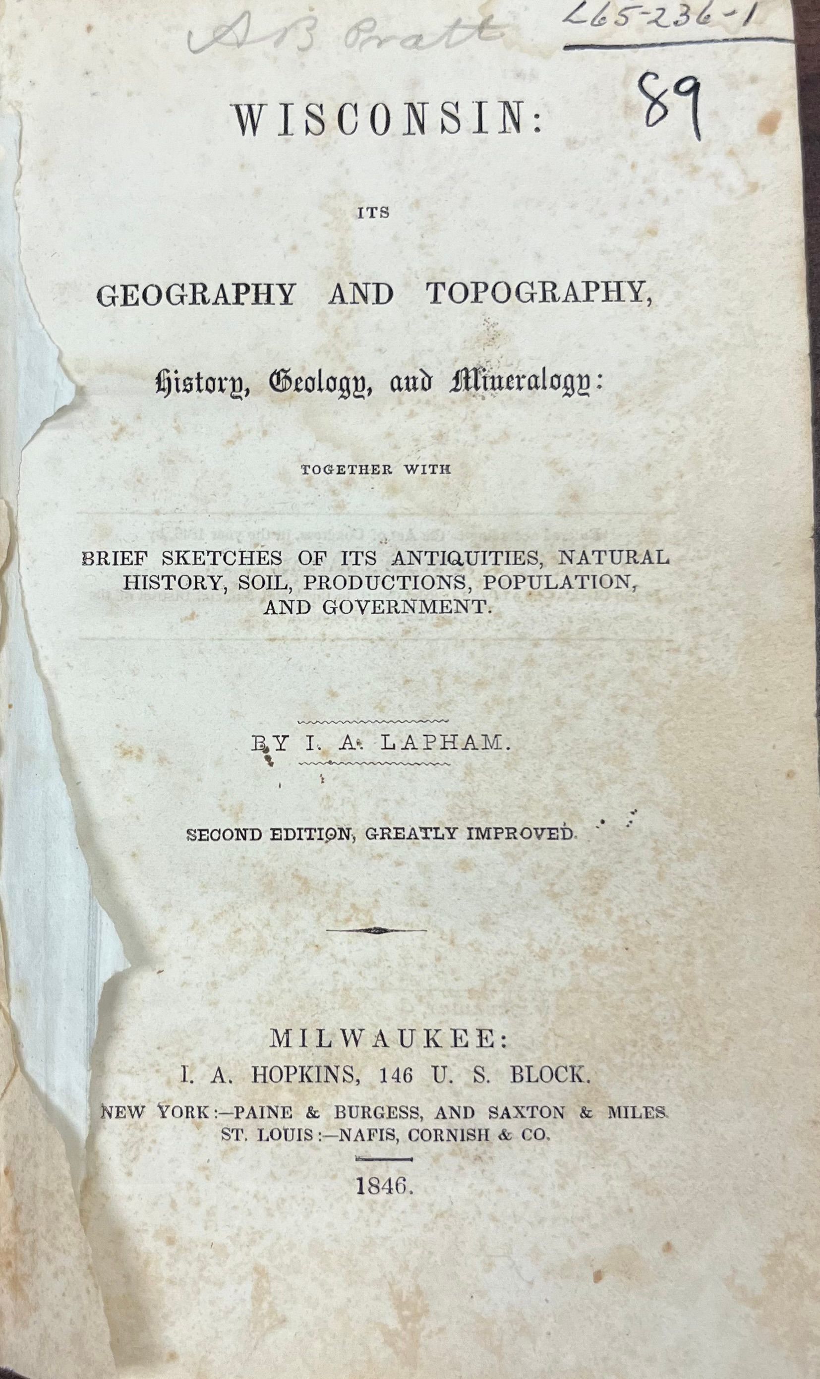 Wisconsin: Its Geography and Topography, History Geology, and Mineralogy...by I.A. Lapham