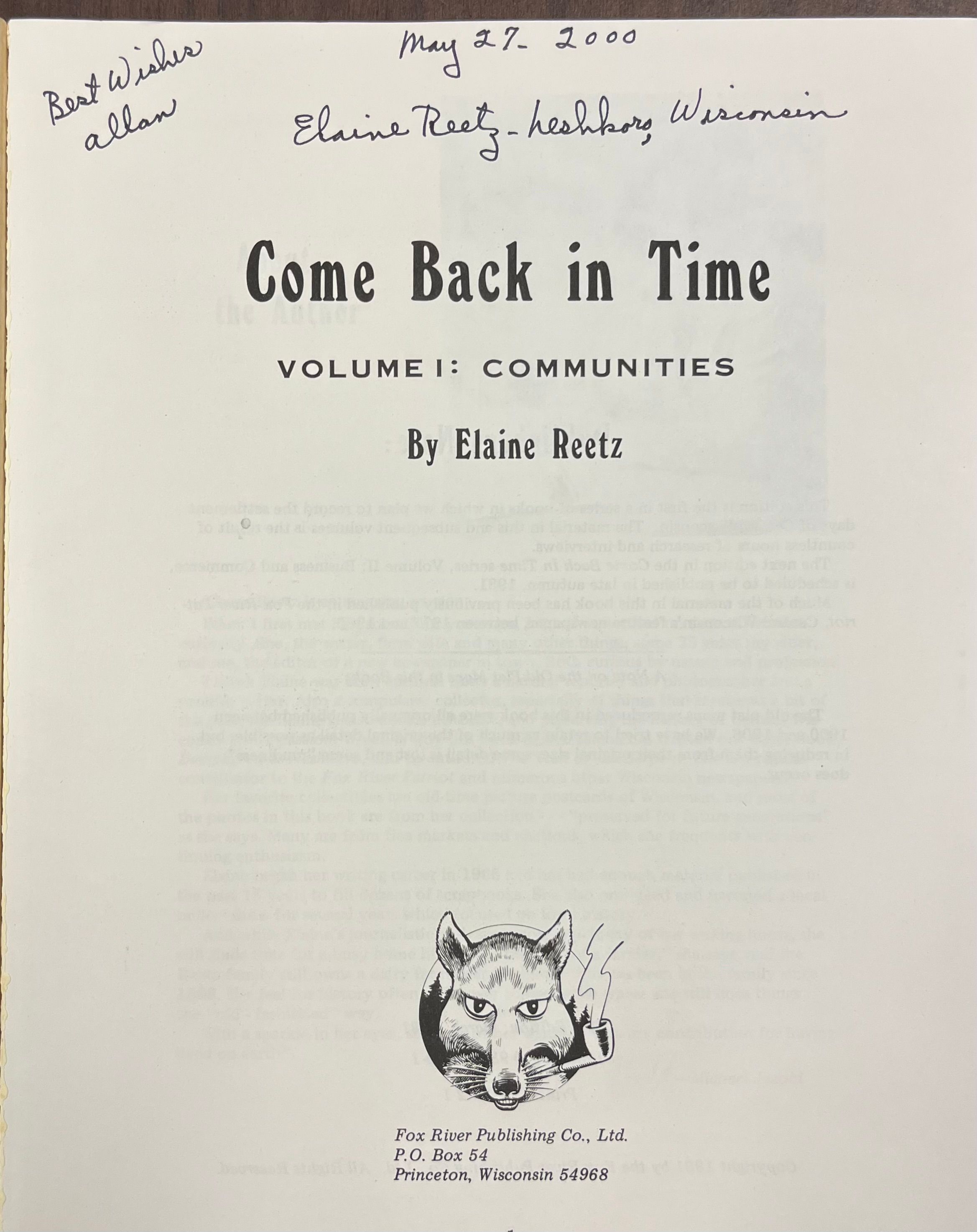 Come back in time, volume 1: Communities 3: When Pioneer Farming was a 'Way of Life'...by Elaine Reetz
