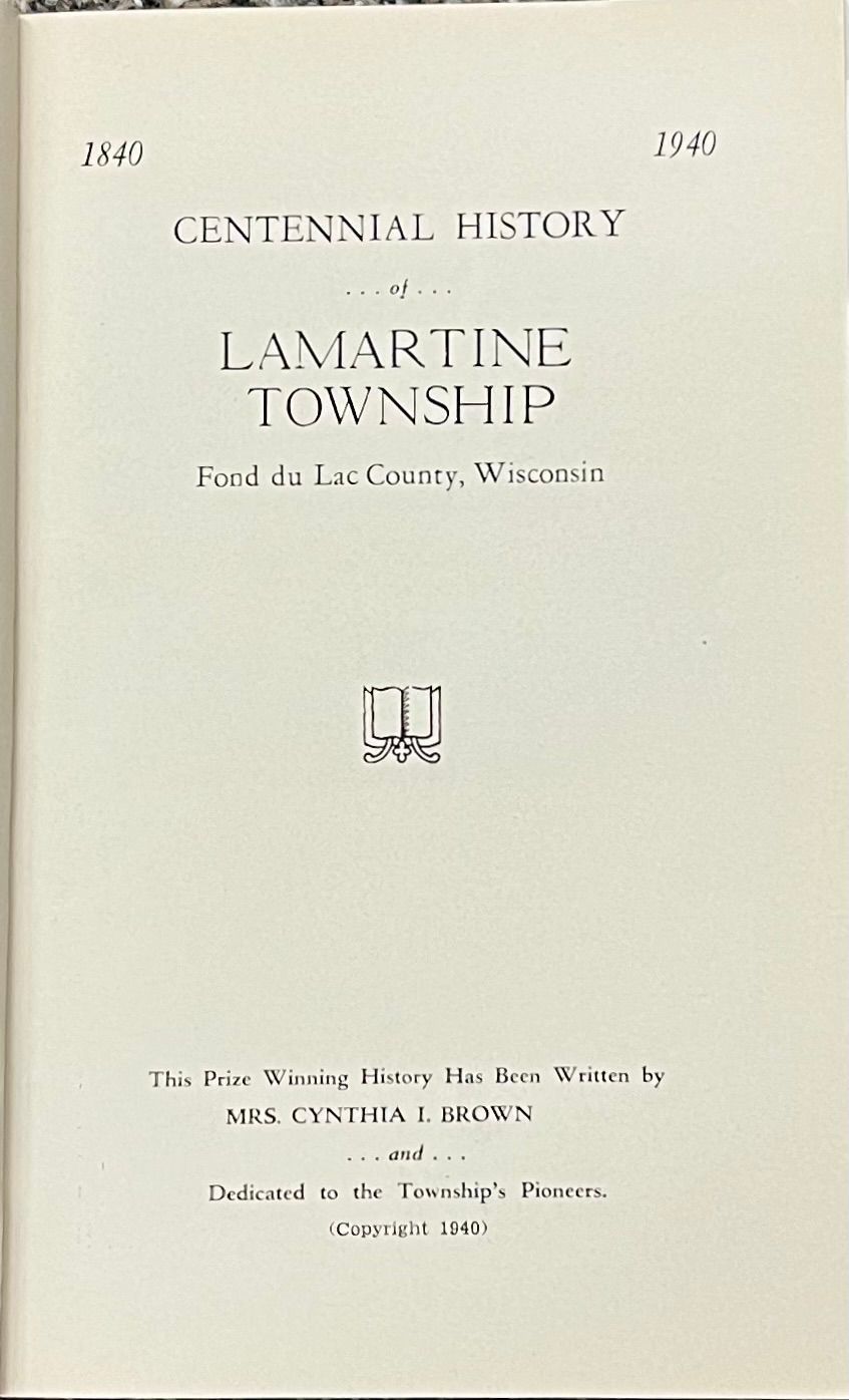 History of Lamartine Township Fond du Lac County, Wisconsin by Cynthia I. Brown