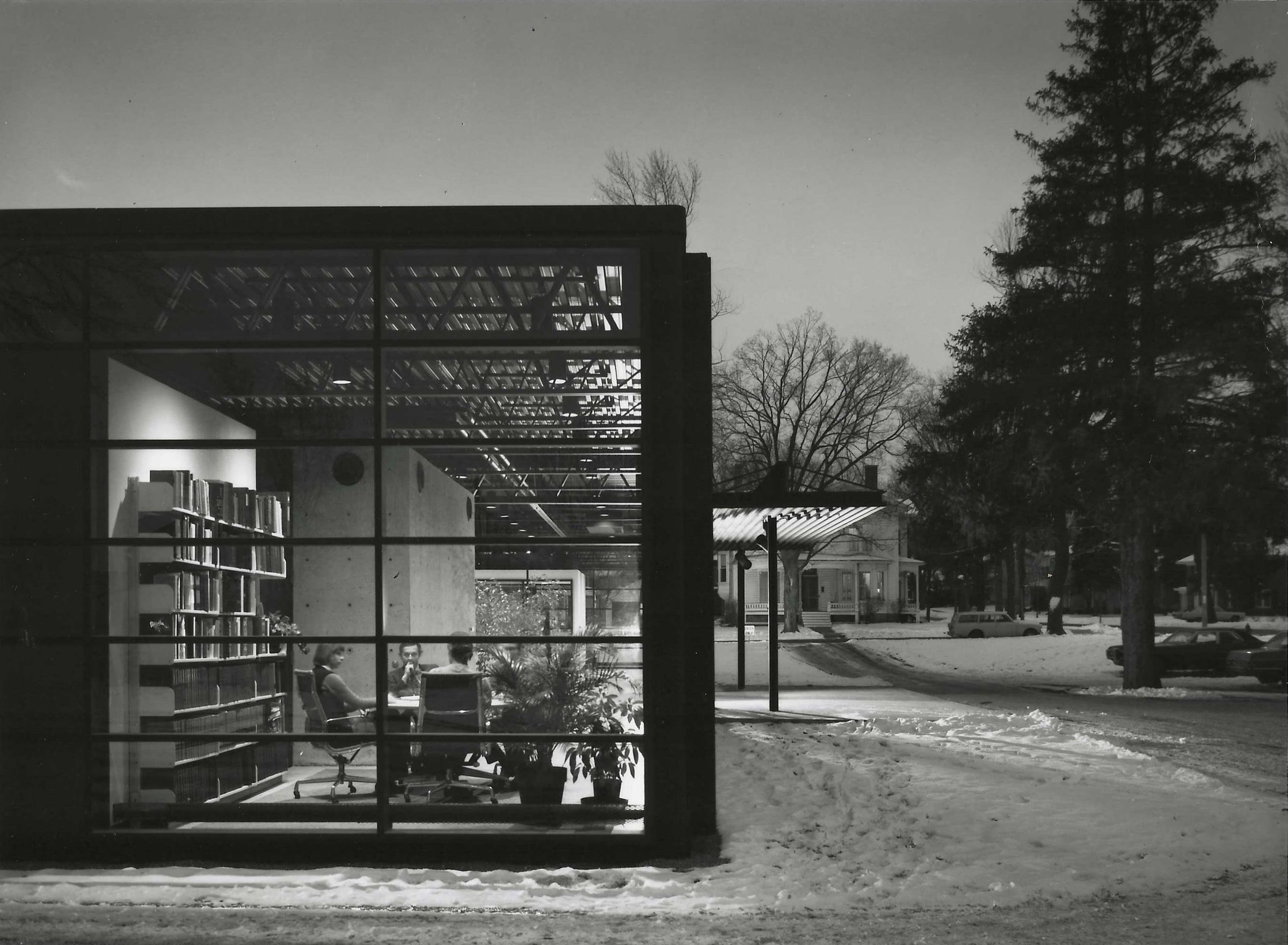 Black & white 8 x 10 photograph of First National Bank, 400 Watson, c. 1975. Photographed from the northwest corner looking south toward Thorne. Ransom St. out of photo to right. House in the background (partially obscured) is 121 Thorne.Acquisition