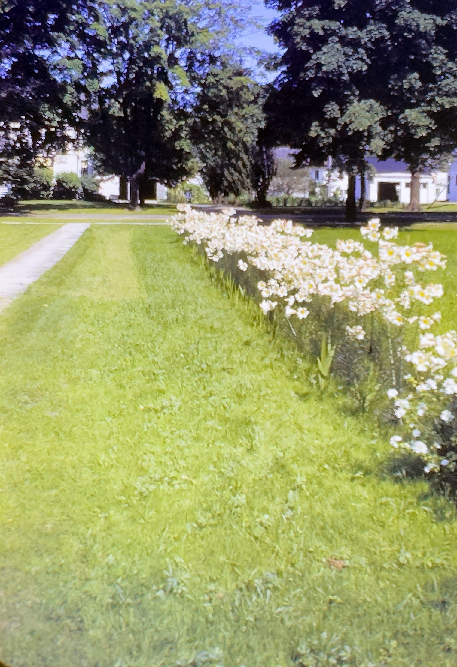 Goodrich Regal Lilies July 9, 1942. Unclear whether this slide is of Byron Goodrich garden at 640 South Grove (only Goodrich in phone book) or the Prof. Grace Goodrich home at 646 Lincoln Street. Prof. Goodrich had died in 1939 but home remained in family into the 1960s.