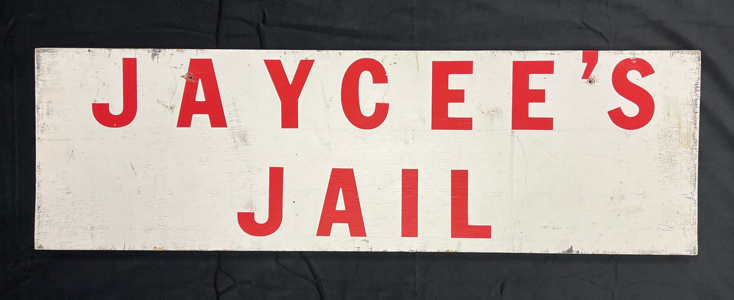 Jaycee's jail sign used during the 1970's by the Ripon Jaycees and Jaycettes at Ripon Fest and Maxwell St. Days.Context