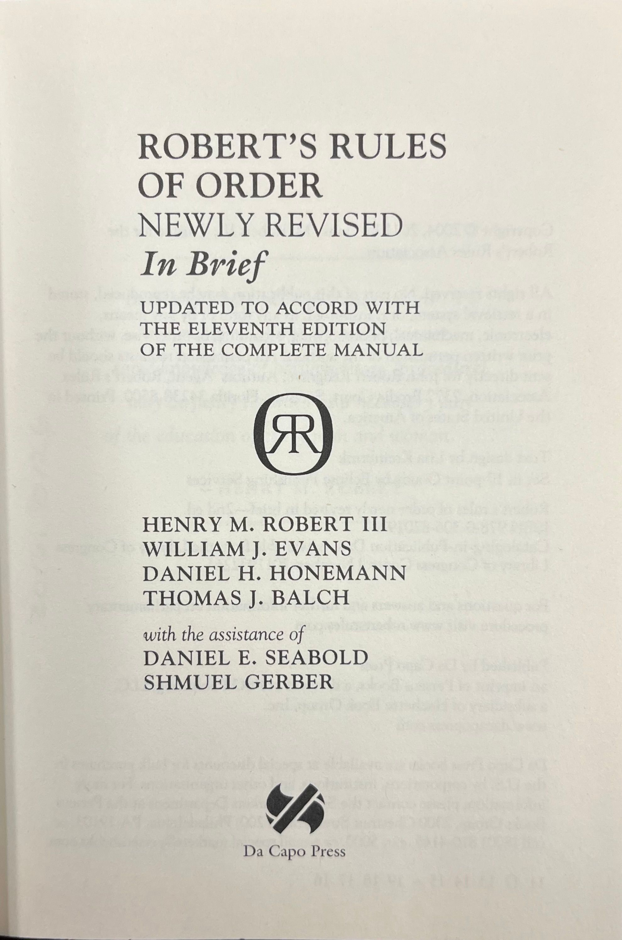 Robert's Rules of Order newly revised in brief...by Henry M. Robert III, William J. Evans, Daniel H. Honemann, Thomas J. Balch