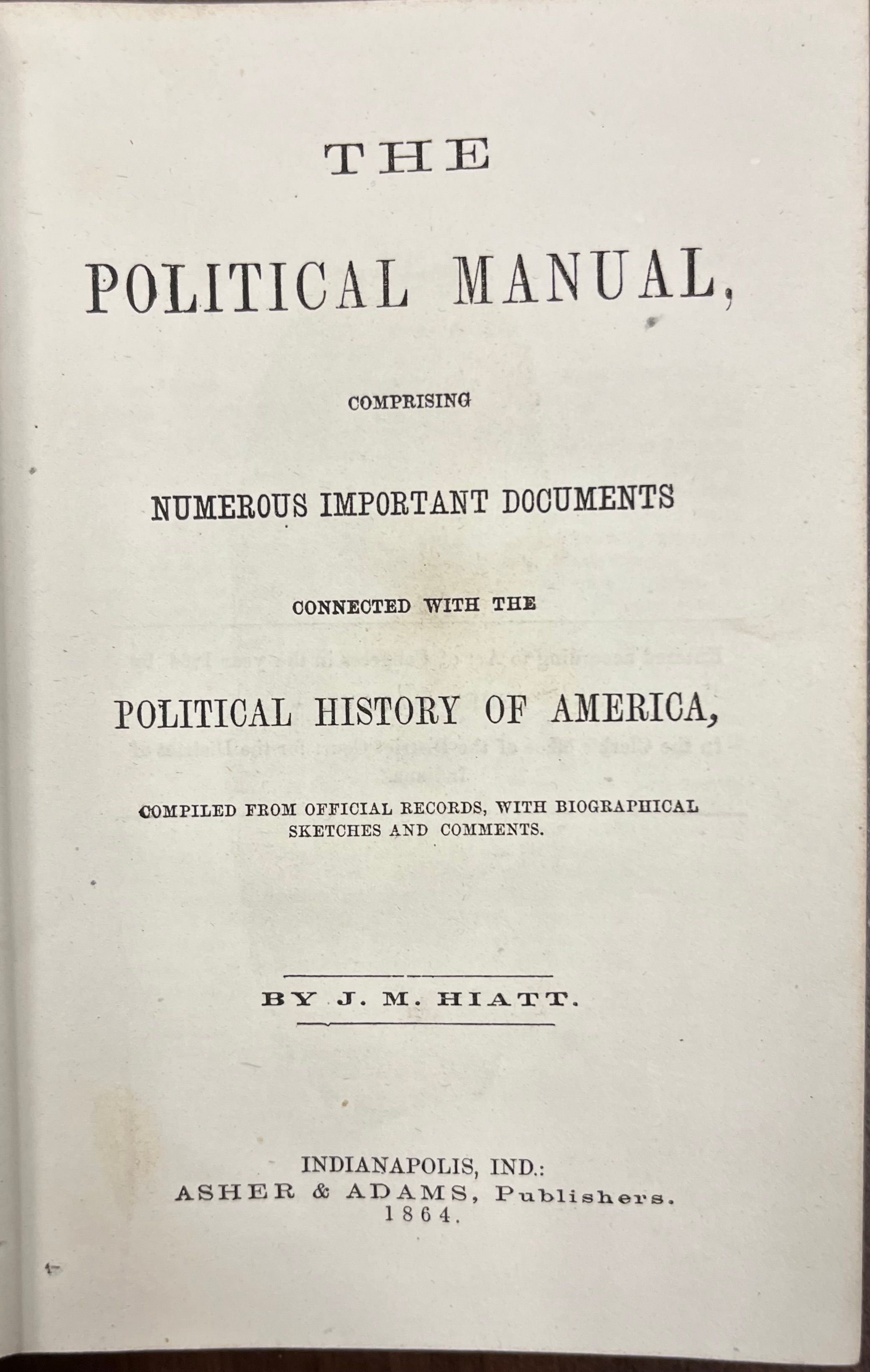The Political Manual comprising numerous important documents connected with the political history of America...by J.M. Hiatt