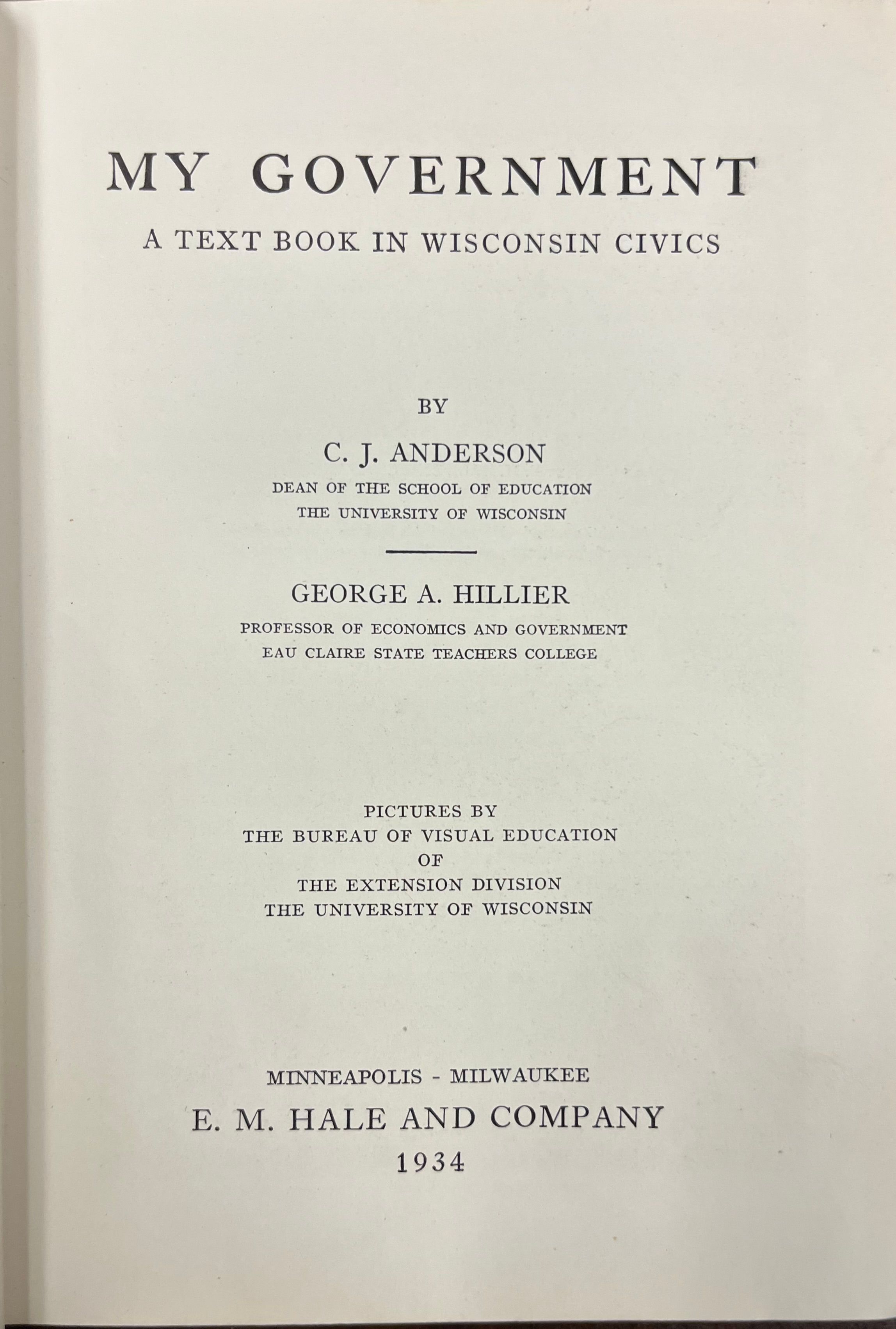My Government; a text book in Wisconsin Civics by C.J. Anderson and George A. Hillier