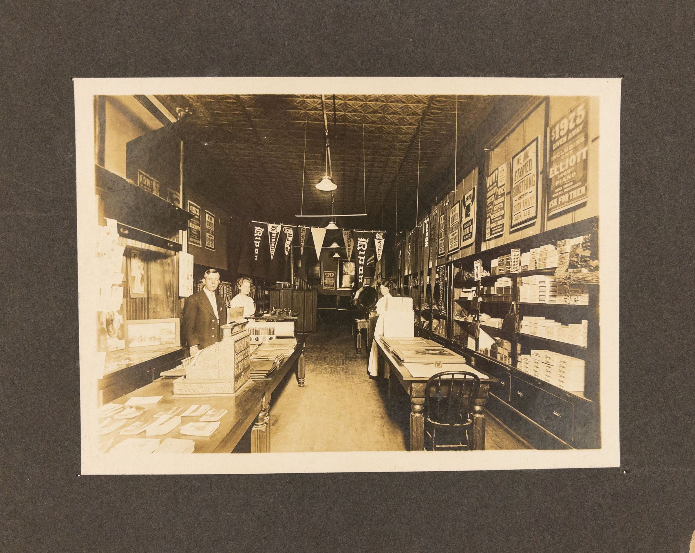 Mrs. Ella B. Kingsbury operated a music store in Ripon for over 40 years, retiring in 1933. The store was located on 108 W. Jackson St. in 1901 and 104 Jackson St. in 1915 to 1916.