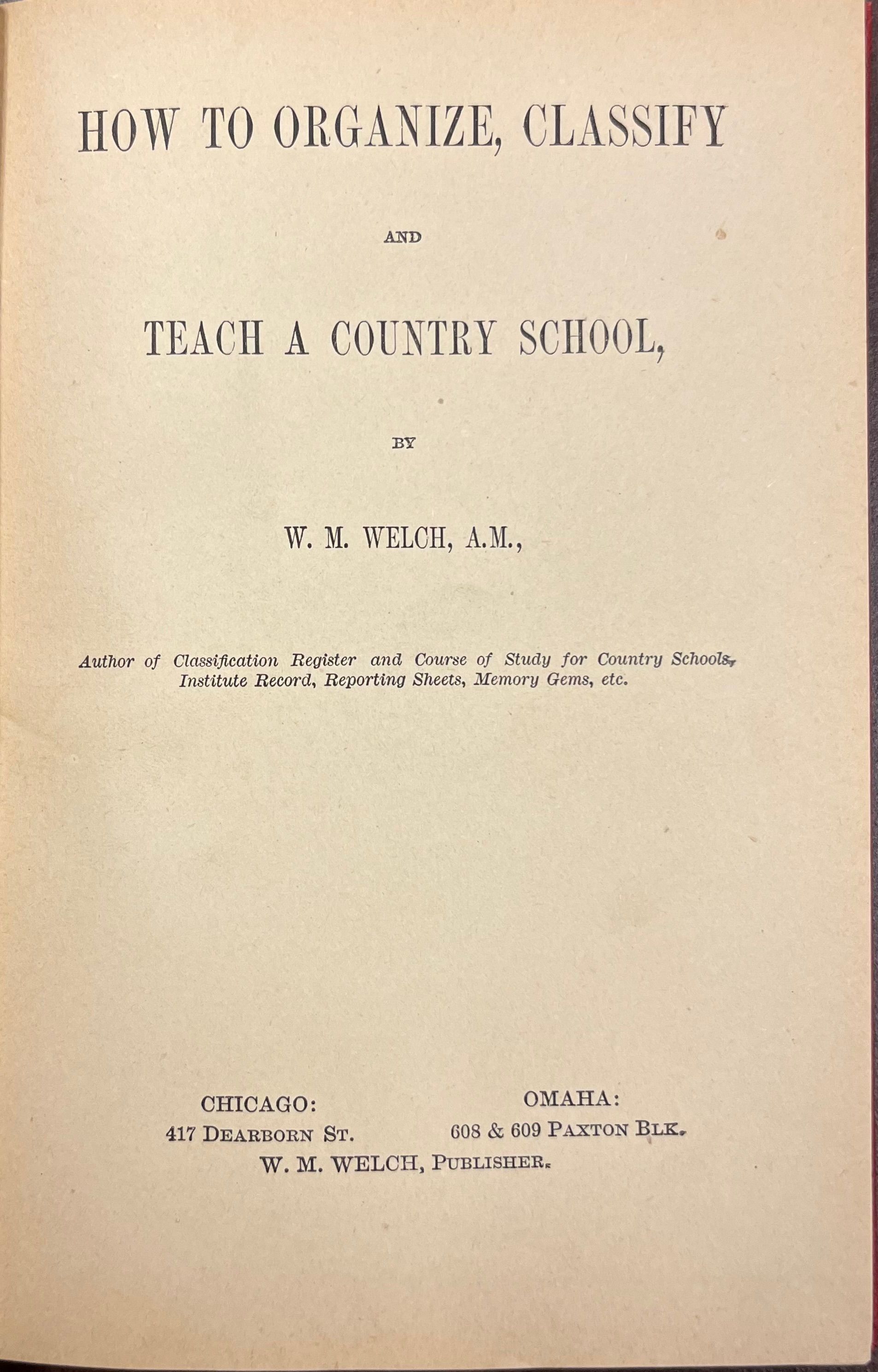 How to Organize, Classify and Teach a Country School by W.M Welch