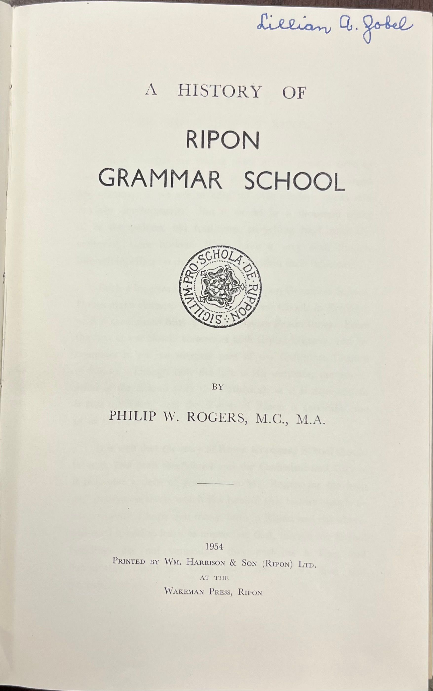 History of Ripon Grammar School [Yorkshire, England] by Philip W. Rogers