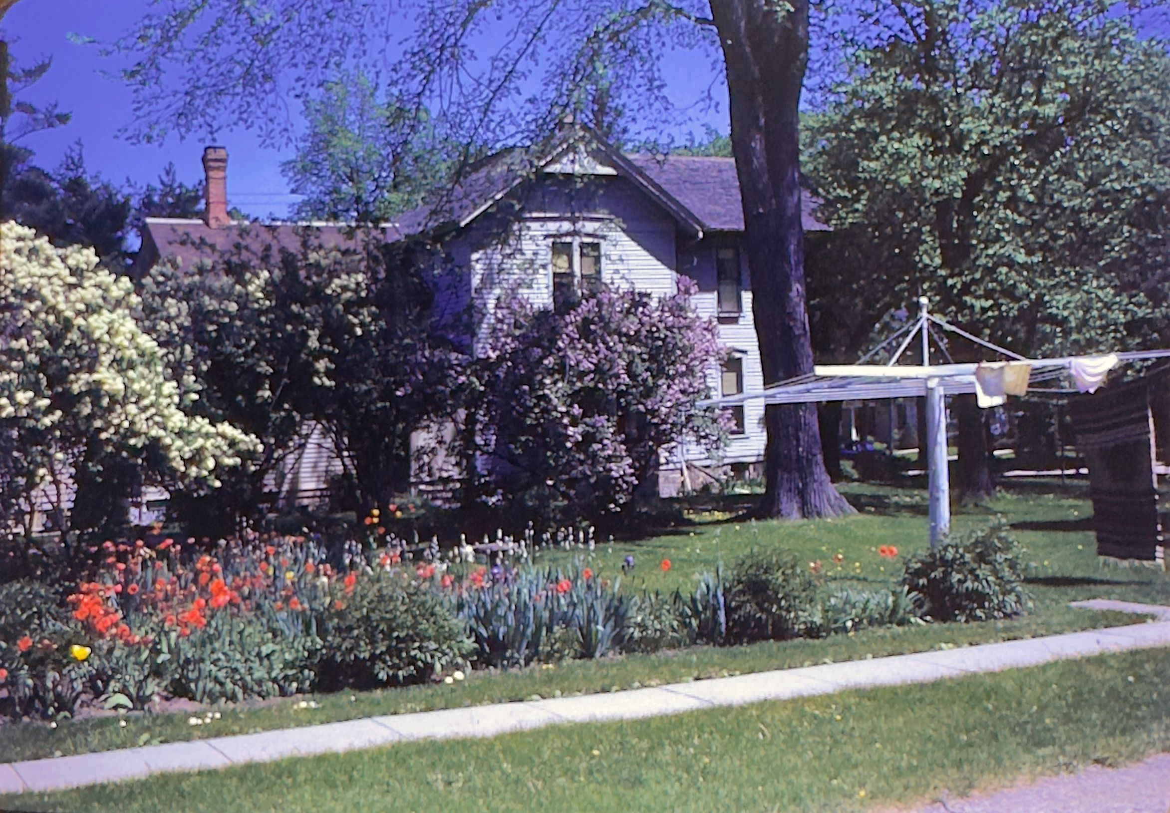 Mary Alice's tulips, lilacs, and iris buds. 841 Watson Street. May 1949. Slide list questions whether Mary Alice is Mary Alice Higby.