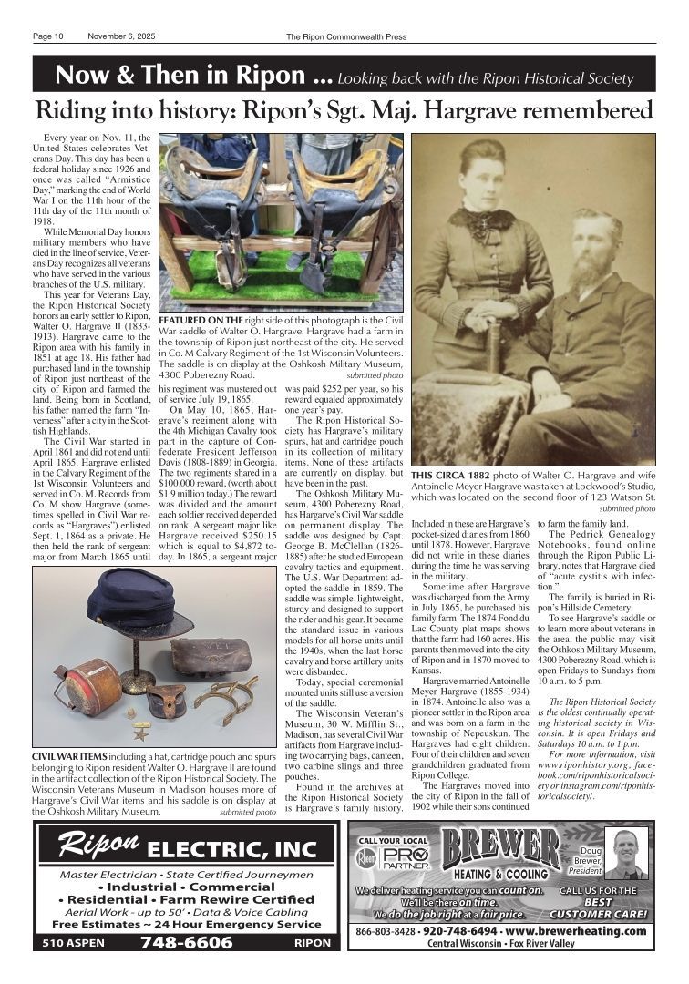 Article Title: "Riding into history: Ripon's Sgt. Maj. Hargrave remembered," November 6, 2025, Issue 45.