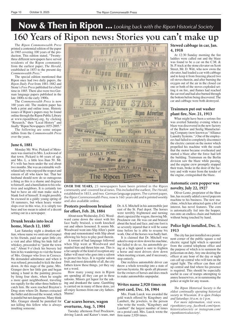 Article title: "160 years of Ripon news: Stories you can't make up," October 9, 2025, Issue 41.