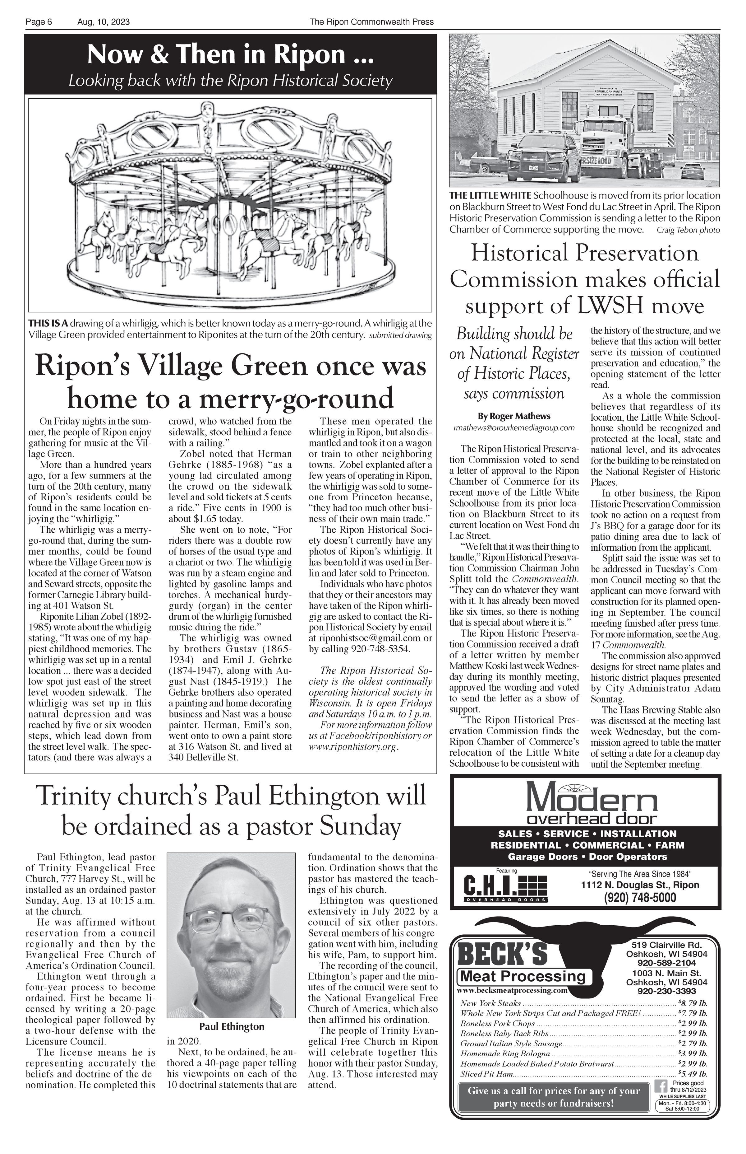 Article title: "Ripon's Village Green once was home to merry-go-round," August 10, 2023, Issue 32.