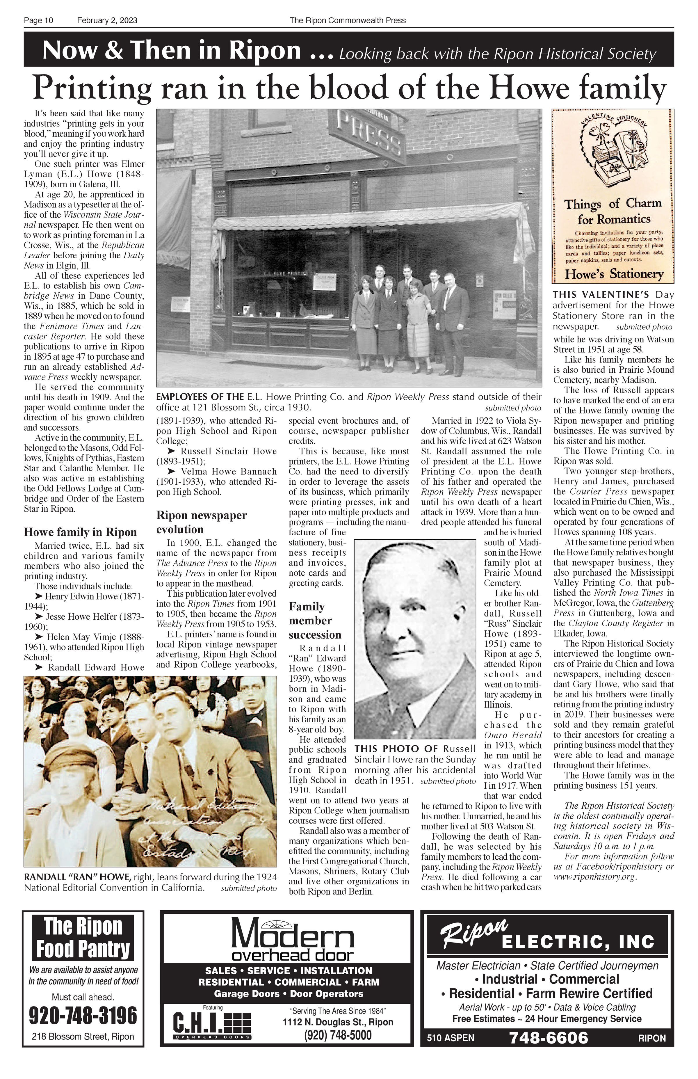 Article title: "Printing ran in the blood of the Howe family," February 2, 2023, Issue 5.