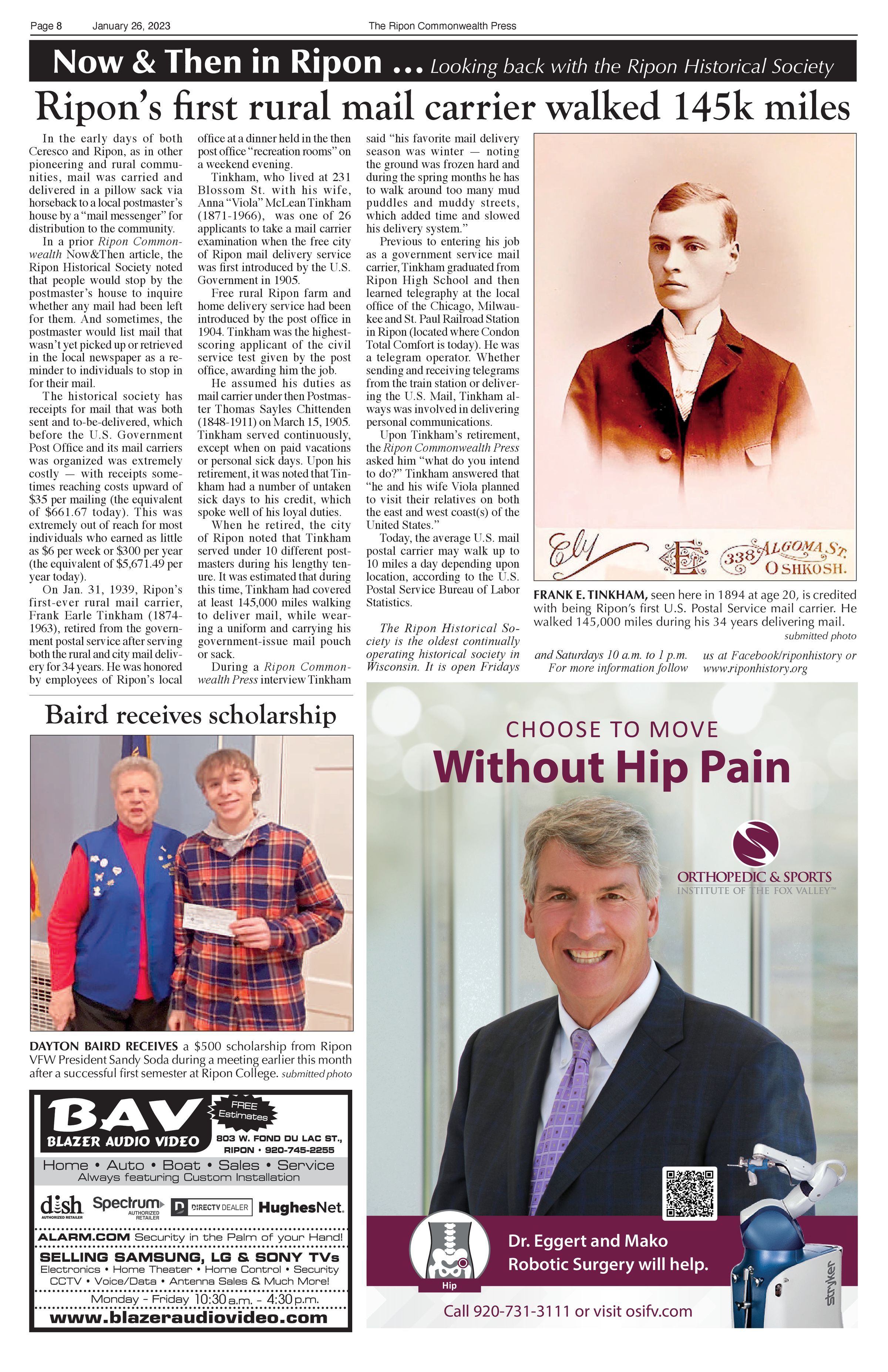 Article title: "Ripon's first rural mail carrier walked 145k miles," January 26, 2023, Issue 4.