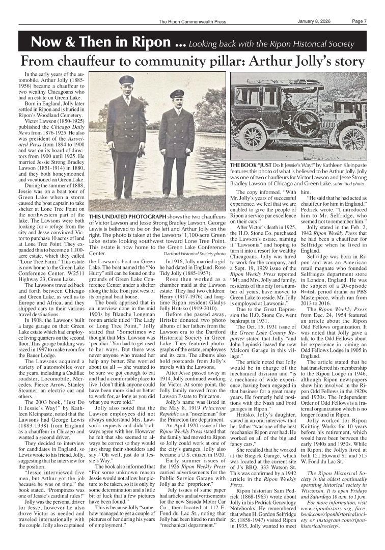 Article title: From chauffeur to community pillar: Arthur Jolly's story, January 8, 2026, issue 2.