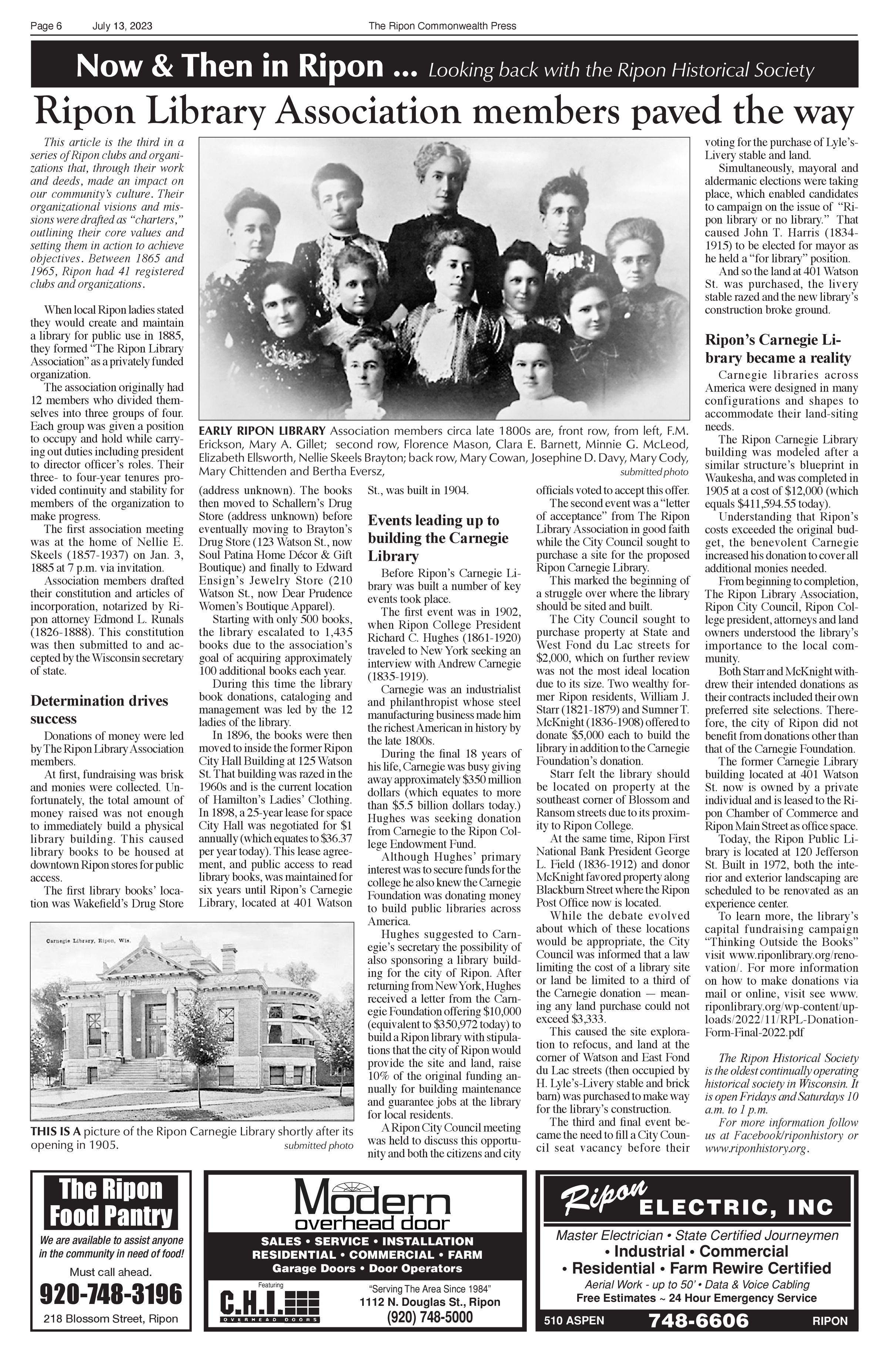 Article title: "Ripon Library Association members paved the way," July 13, 2023, Issue 28.