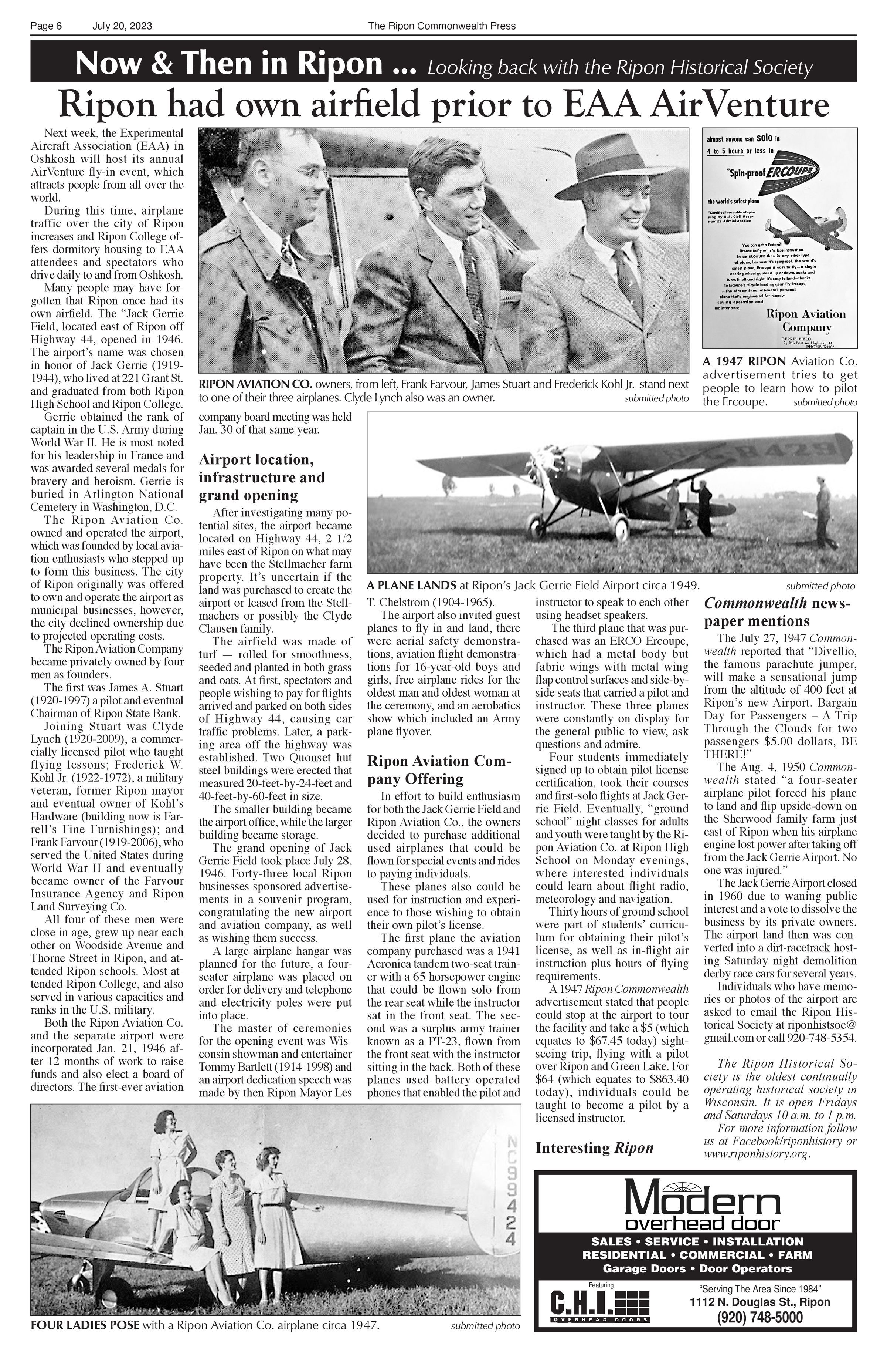 Article title: "Ripon had own airfield prior to EAA AirVenture," July 20, 2023, Issue 29.