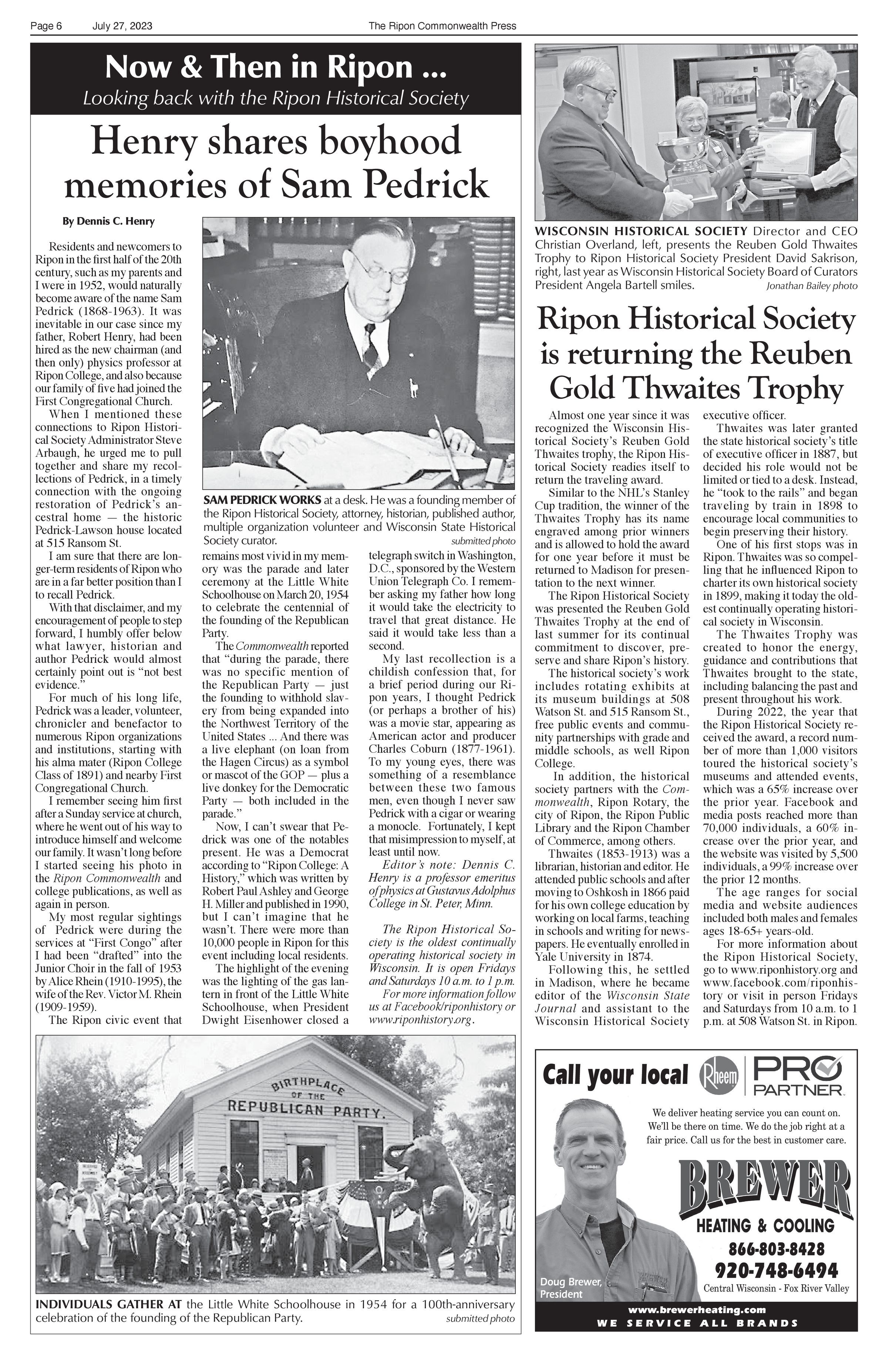 Article title: "Henry shares boyhood memories of Sam Pedrick," July 27, 2023, Issue 30.