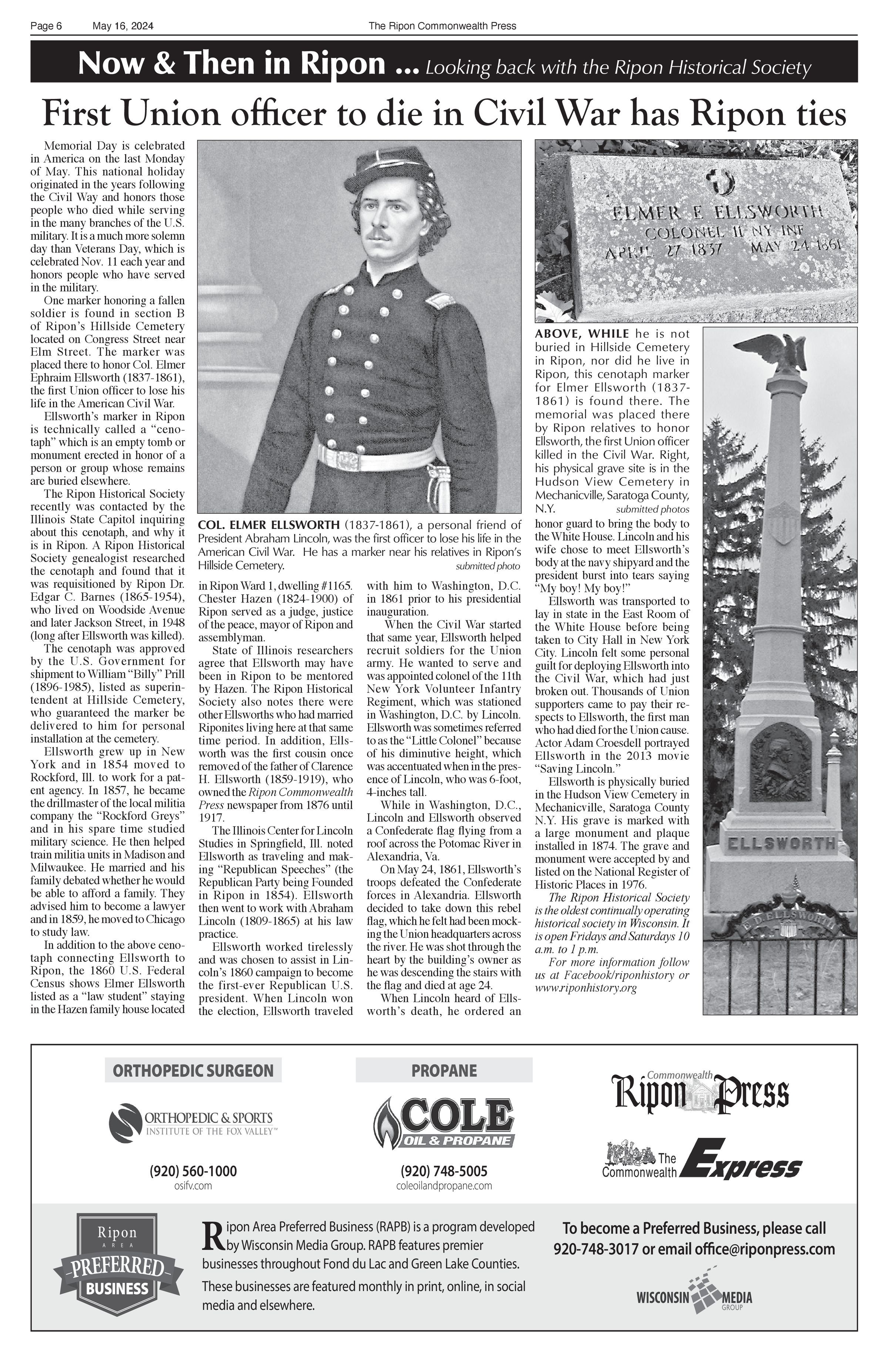 Article: "First Union officer to die in Civil War has Ripon ties"