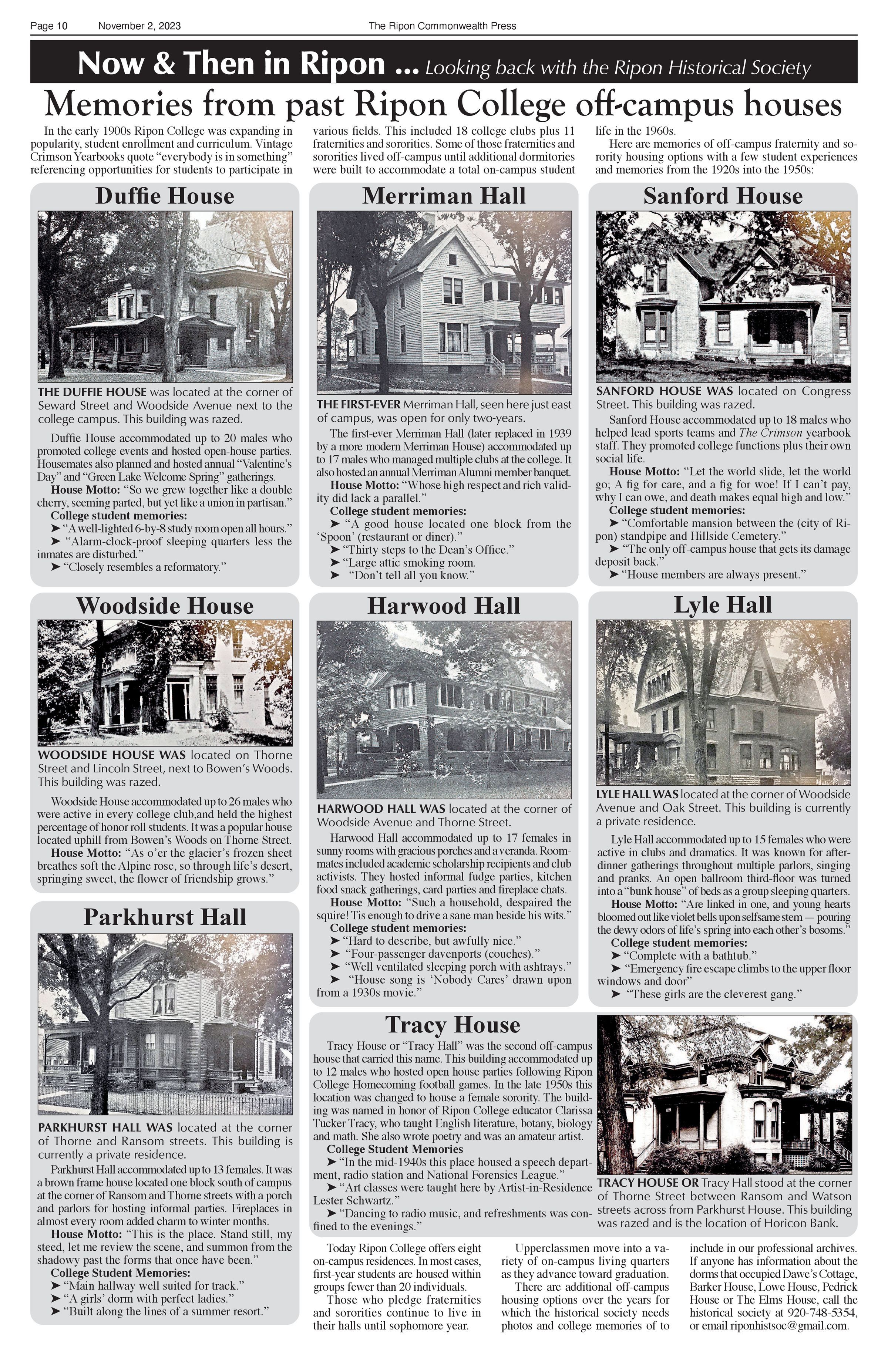 Article title: "Memories from past Ripon College off-campus houses," November 2, 2023, Issue 44.