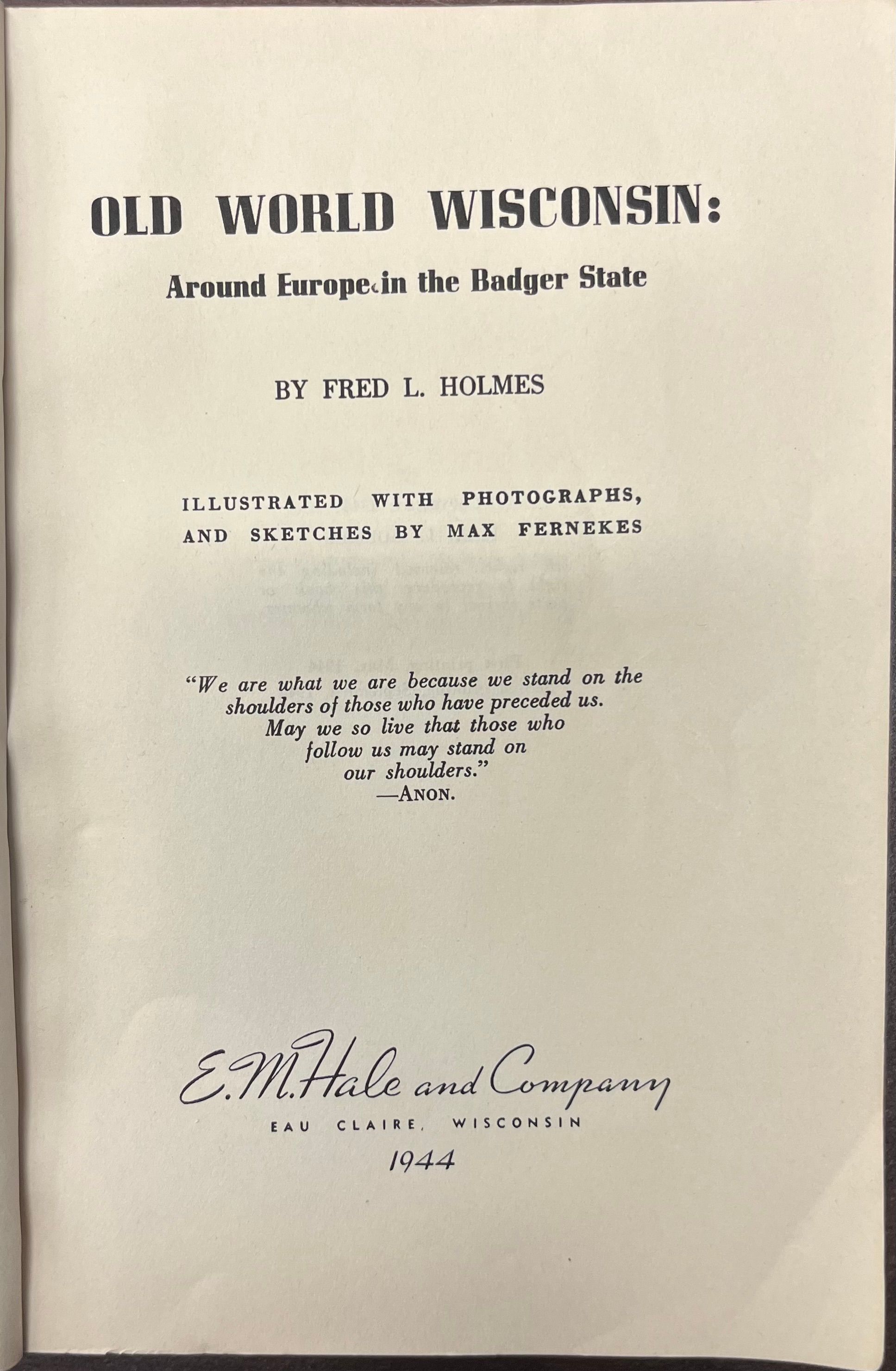 Old World Wisconsin: Around Europe in the Badger State by Fred L.Holmes