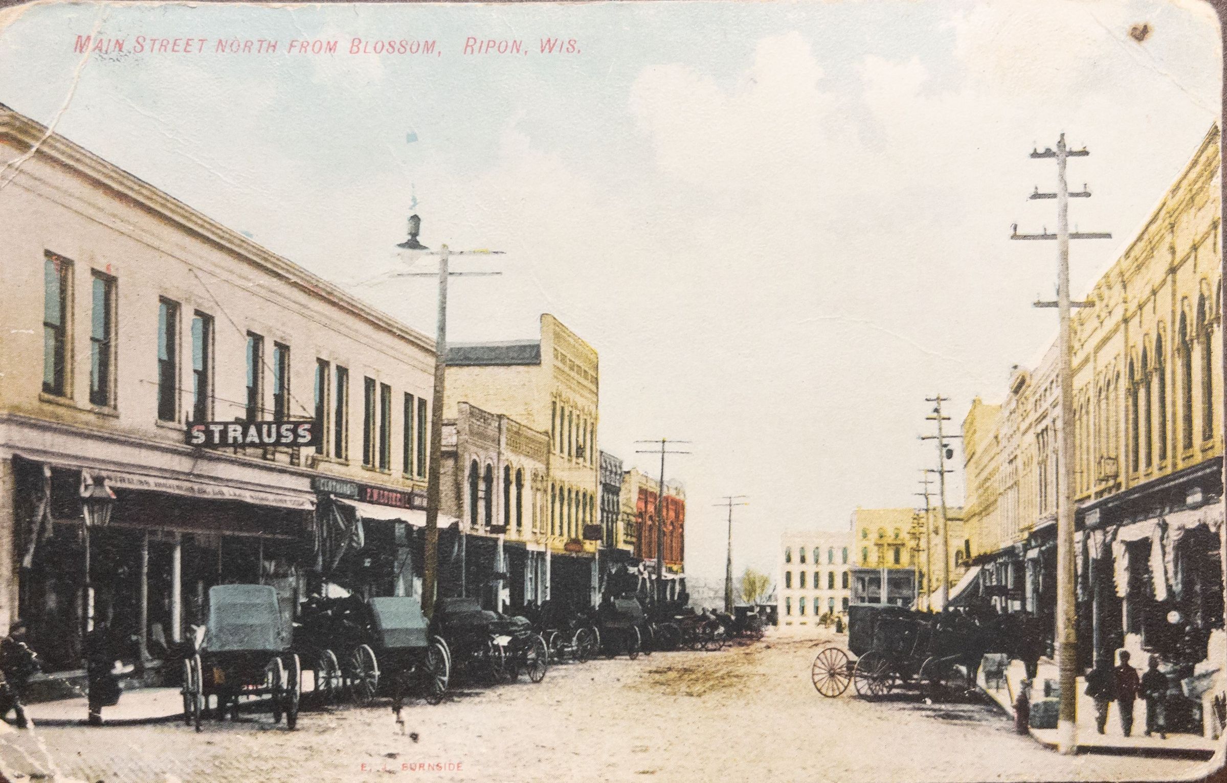 1909 postcard of Main St., North from Blossom in Ripon, WI.Context